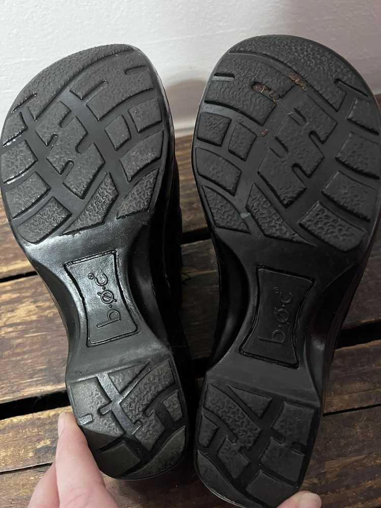 b.o.c. BORN Solid Black Leather Clogs Mules Shoes Womens Sz 6 M Looks like they were worn maybe once! Checkout the pictures!