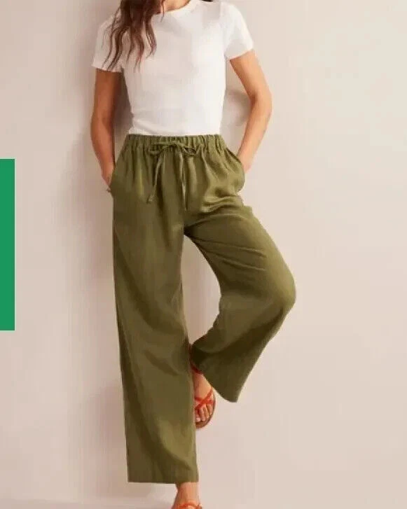 BODEN Relaxed Pull-on Linen Trousers SIZE UK10 BODEN Relaxed Pull-on Linen Trousers SIZE UK10 Thanks for coming to the Fashion Warehouse Elevate your wardrobe with these stylish and comfortable Boden trousers. The relaxed fit and cargo style make them perfect for everyday wear, while the linen material ensures breathability and comfort. The trousers come in a beautiful shade of green and are available in size UK10. The Boden brand is known for its quality and durability, making these trousers a great addition to any wardrobe. They are perfect for women who want to look stylish while staying comfortable. These trousers are versatile and can be dressed up or down, making them perfect for any occasion. Returns About Us Aftercare Leaving Feedback Yes, of course we will take your returns back, however please note the following policies to prevent any issues being raised. 1 You must return the original item, in its original packaging, unworn, unused with no rips, smells or stains this includes human hair 2 When you wish to return our item, please put in the reason for the return, if you are falsely claiming a return was not as described. we will report this to our platform provider to ensure you are barred to try and gain a free return 3 All items are as described, the colours and sizes may look different on a picture to real life, this is something you have to consider. The Fashion Warehouse, is a company owned by theBatteryShop Ltd we are based in Northern Ireland and have been around since 1998 by the owner the Castle Group in UK. We pride ourselves in ensuring that all customers get a quality product, and very affordable pricing. The After Care that we provide is answered within the platform in which you have purchased our stock, we offer no service outside of this arena and ask this is respected. This is to protect both parties from scammers, false claim backs and counter claims, the platform normally act as judge on outcomes and expect full communication to stay within their realm of business. Please kindly note, we do not answer emails via the platform in real time. Please also Kindly note, anger, rudeness and abuse is never tolerated. Feedback is very important to our little business, however we always tend to have customers who raise a negative feedback and do nothing to get us to help them. If you are considering leaving negative feedback, why not reach out to us first using the contact us button to discuss the issue before considering leaving negative feedback
