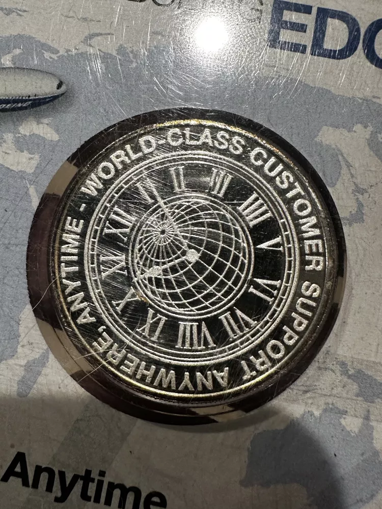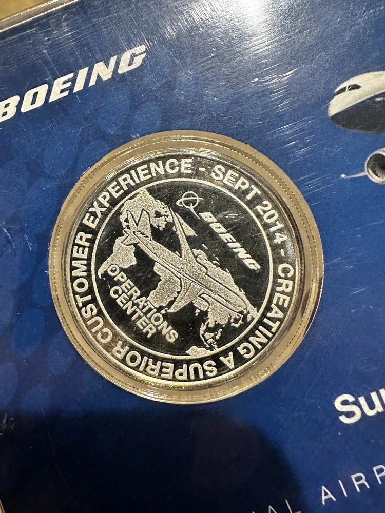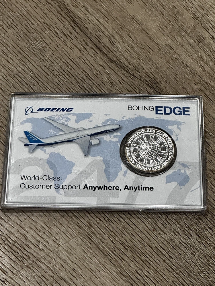 Case has signs of wear but coin itself is in new and never opened condition. This BOEING Customer Service Challenge Coin is a must-have for aviation enthusiasts and collectors alike. Made with precision and attention to detail, this coin features the iconic 777 edge design and is sure to be a prized possession. Crafted for those who appreciate quality and value, this coin is a great addition to any collection. Its unique design makes it perfect for display or as a conversation starter. Get your hands on this rare piece of aviation memorabilia today!