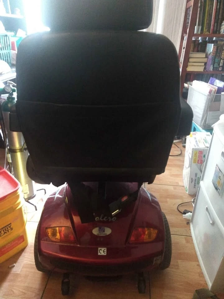 BOLERO Electric Four-Wheel Red Mobility Scooter With Ramp /needs key replacement. Had a new battery installed before going into storage, wheels have been freshly pumped. My mother used it before she passed and I have no need for it. It comes with a extra ramp and the charger. I can't find the key anywhere, but from what I understand it should be replaceable for about $25.