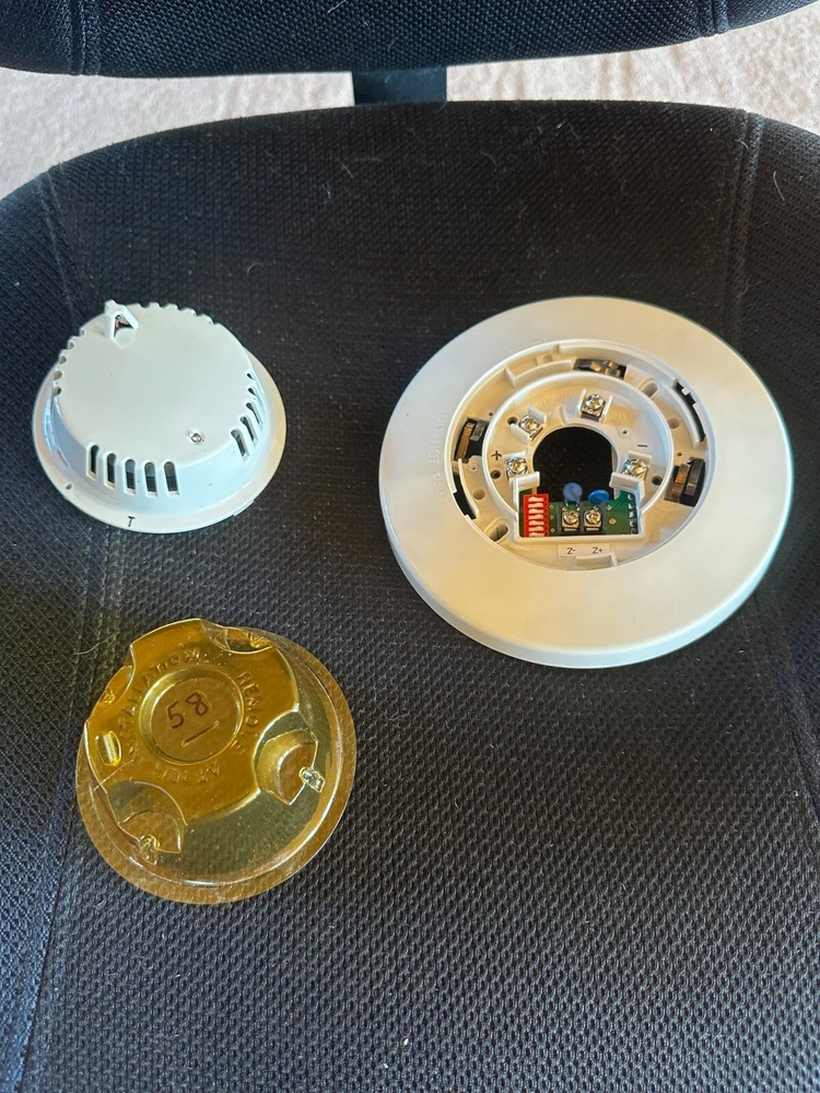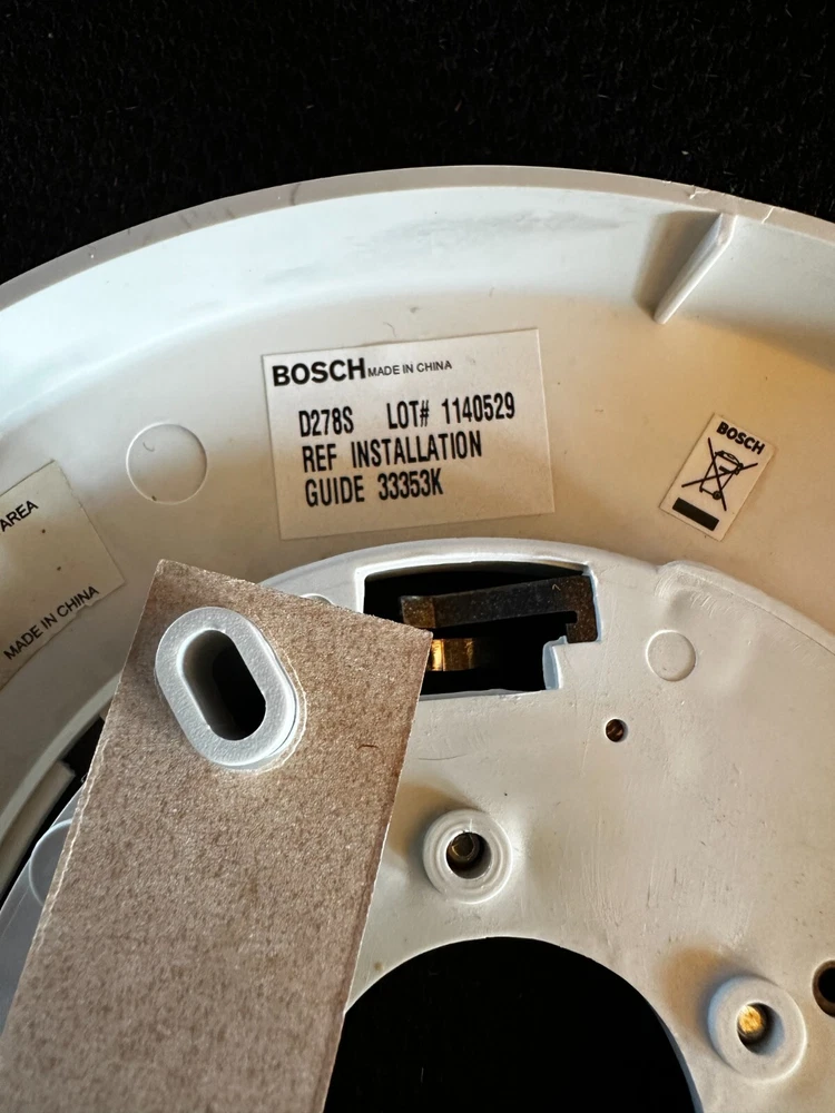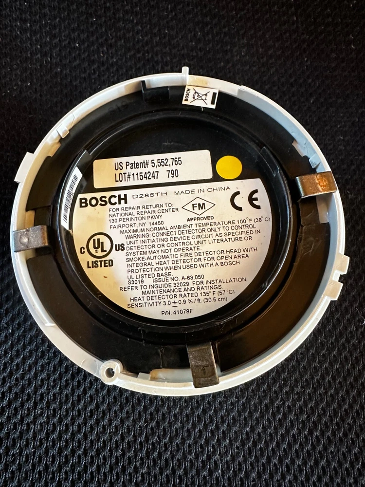 BOSCH D285TH Smoke Detector and D278S Addressable base D285TH Series Photoelectric Smoke Detector Heads (12/24 VDC) D278S 12 V Four-wire Addressable (POPIT) Detector Base (6 in. [15.2 cm] diameter) Removed from a working home security system.