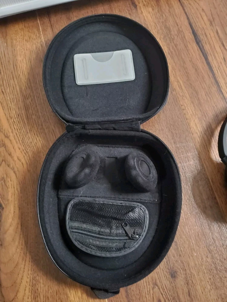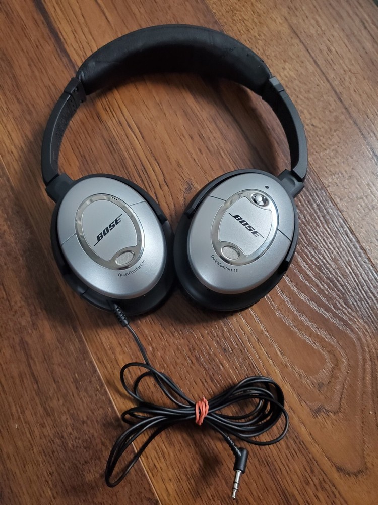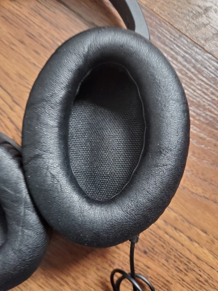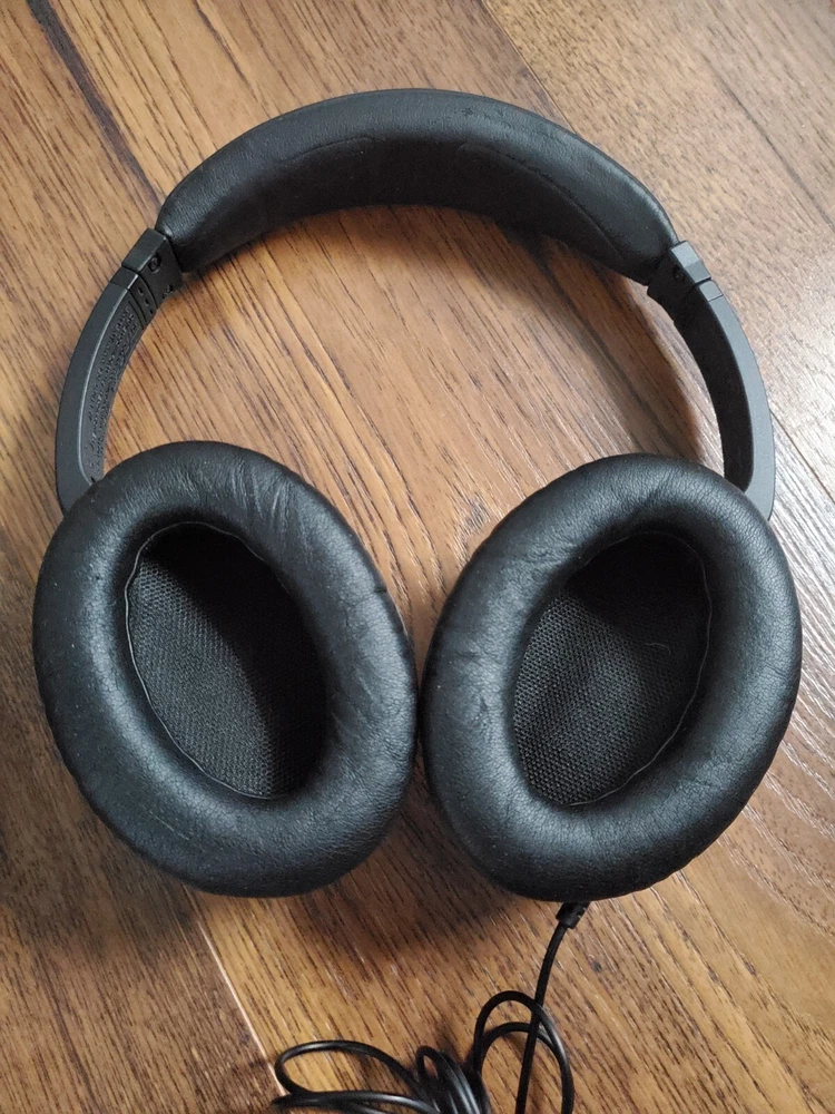 Bose canceling wired over the ear headphones with case, some cracking/pealing on the ear cushions & head strap, adjustable head strap, as pictured, no returns. Shipped USPS