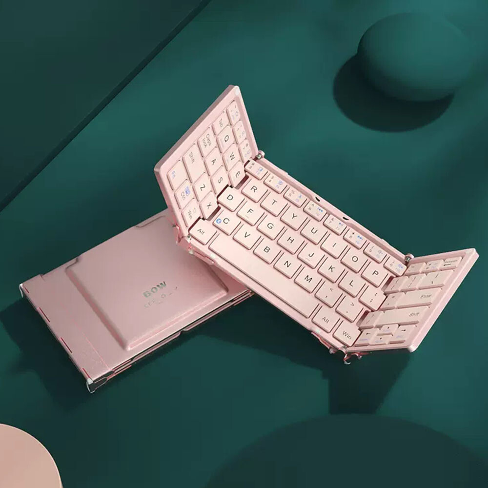 BOW HB066S Mini Folding Bluetooth Keyboard Suitable for Android, Windows, PC, Tablet, Phone Description: Interface standard: Bluetooth 3.0 Charging duration:<2 hours Lithium battery capacity:>210mA Effective operating range: within 10m Adaptive mode: GFSK Sustainable working time: 8 days Working voltage: 3.0~4.2V Working current:<2.5mA Standby current:<0.3mA Sleep current:<40UA Key lifespan: 3 million clicks