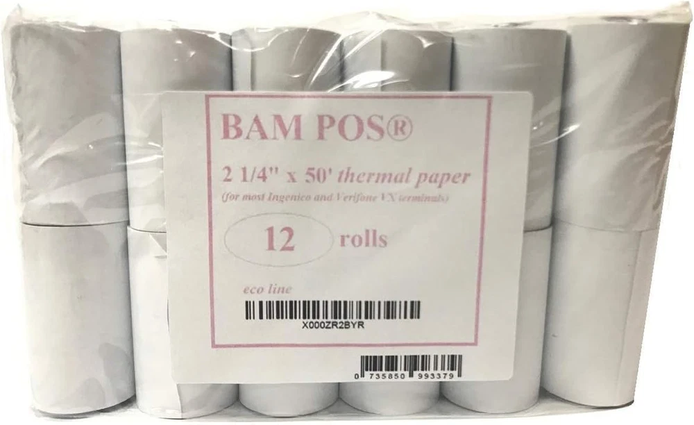 Store New Arrivals Add to Favorite View Feedback Credit Card Receipt Paper - 2 1/4 X 50' - BPA Free, Crisp & Clear Images - Compatible with for the VX520 & Verifone Credit Card Machine Model (12 Rolls) Description Item model number BAM57MM15M-12PK Sheet Size 2.25 Inches Number of Items 12 Color White Brand BAM POS Material Type Thermal paper Manufacturer Part Number BAM57MM15M-12PK Item Weight 16 ounces Paper Weight 20 Paper Finish Glossy Manufacturer BAM POS Is Discontinued By Manufacturer No Product Dimensions 5 x 5 x 5 inches Size Pack of 12 High-Quality Credit Card Receipt Paper: BAM POS provides superior 2 1/4 inches x 50 feet credit card receipt paper rolls, ensuring clear and professional receipts for all your credit card transactions Compatibility: BAM POS Credit Card thermal paper rolls are designed specifically to work with VeriFone, VX520 credit card machines and other compatible models. These thermal paper rolls helps to provide customers with easy-to-read and reliable transaction records Suitable for Various Businesses: Whether you run a retail store, restaurant, or any other business that accepts credit card payments, these thermal paper rolls are an ideal equipment for your point-of-sale system Portable and Convenient: Each credit card receipt paper roll is compact and lightweight, making it easy to store, transport, and replace in your credit card machine Effortless Installation: The credit card receipt paper rolls are designed for easy loading into the credit card machine, allowing for quick and hassle-free replacement when the current roll is used up Product Description ABOUT US We offer the best prices around on high quality products. Our E-store includes media such as books, movies, music and games while offering electronics, toys, sporting apparel, clothing, tools, general home, garden items and more. SHIPPING We are always working hard to ensure your package arrives as soon as possible. Please understand that some factors like weather, high postal traffic, and the performance of shipping companies are outside of our control. We offer free shipping to the lower 48 states and ship within 2 business days of payment, usually sooner. We do not accept P.O. Boxes. Please provide a physical address. RETURNS We offer a 30-Day Return Policy on items which you are not completely satisfied with. You have the option for a full-refund or an exchange of the item. No returns are available on items shipped outside of the USA. PAYMENT We accept PayPal. CONTACT US This page content is yet to come Please ad us to your favorite seller and visit again later Thank You