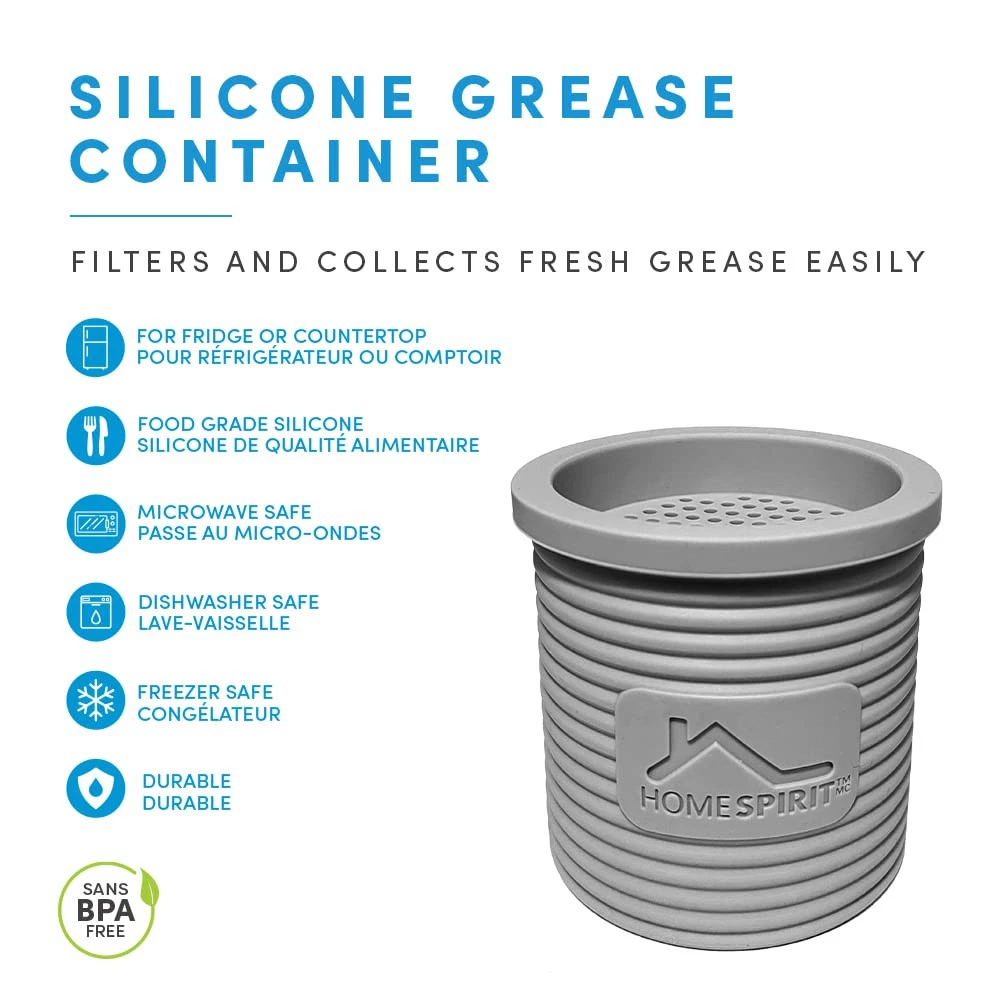 【Efficiency 】You can save the grease with bacon grease keeper, which means you can use it the next time you fry chicken, potatoes, or onion rings! Reuse bacon/cooking oil/pan and grill grease to add flavor to popcorn, eggs, pancakes, or any meal you like. 【Easy to Use and Clean!】 Our bacon grease keeper can be cleaned in a dishwasher or by hand safe for use in the freezer, refrigerator, or microwave. This is made of silicone so it can withstand the hottest grease and has a strainer to ensure your bacon fat solidifies clean and creamy. 【Convenience】The grease can be easily scooped or scraped out with a spoon, and after use may be put in the refrigerator to keep fresh. The strainer of this grease disposal container is easy to remove. It lets you pour grease in with ease and the lid is easy to pop off. 【Underrated Gift】 This bacon bin would make a great gift. Suitable for friends’ birthdays, Christmas, housewarmings, weddings, and other holidays. Delight your partner, family, friends, or officemates with this very affordable bacon fat container. 【Cost Effective】Are you searching for a safe, clean, and durable way to frying oil and hot grease? This grease container for kitchen might be just what you are looking for. The kitchen grease container will live up to your expectations
