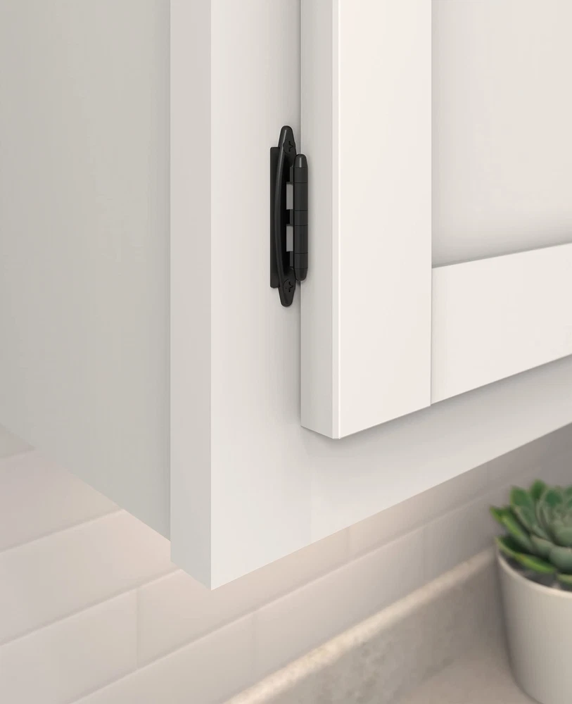 The BPR3417FB 3/8 in (10 mm) Inset Non-Self Closing Face Mount Cabinet Hinge is finished in Matte Black. Every hinge item is tested for durability in conditions exceeding all KCMA certification requirements and BHMS standards for cycle life, strength and finish quality. The backdrop of starred skies and elegant evenings, black can be unmistakably striking. Matte Black adds a simple, yet bold statement to any room. Founded in 1928, ’s award-winning home solutions including decorative and functional cabinet hardware, bath accessories, decorative hooks and wall plates have built the company’s reputation for chic design accessories that inspire homeowners to express their personal style. offers a variety of styles and finishes at affordable prices that add the perfect finishing touch to any room. 3/8 in (10 mm) Inset Hinge. Please note, these are not overlay hinges. This inset hinge only works for faceframe cabinets. Before ordering, please confirm that you order the right hinge for your cabinet. While we strive to accurately display colors, they may appear differently due to variations in individual monitor settings, which are beyond our control This hinge is free swinging (nonself closing) and requires a separate catch to keep the door tightly closed. Includes 2 hinges and necessary mounting hardware. While we strive to accurately display colors, they may appear differently due to variations in individual monitor settings, which are beyond our control