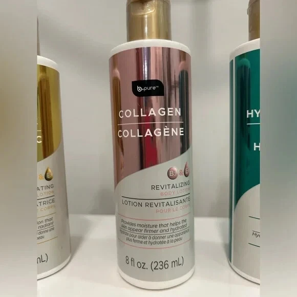 BRAND NEW Unused/unopened Full set of 3 lotions Collagen Helps skin appear firmer and hydrated Revitalizing Hyaluronic Acid Helps skin appear smoother and softer Hydration Vitamin C Helps skin appear more radiant Hydration Illuminating Hair shimmer spray Spray onto dry hair Infused with keratin