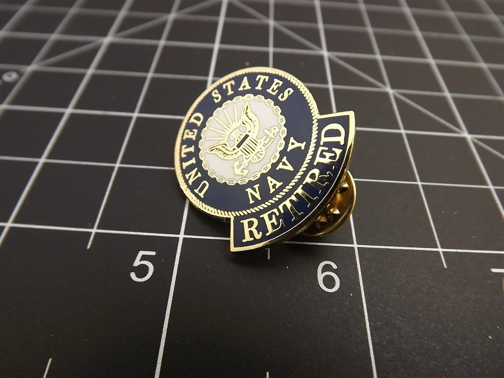 BRAND NEW Lapel Pin United States Navy RETIRED Blue & White Enamel 15/16" Lifetime Guarantee on Workmanship and Quality! All our Lapel/Hat pins come with a lifetime guarantee for workmanship and quality. Save on Shipping Costs! We offer combined shipping to save you money! If you want to purchase two or more items from us, please use the "offer" feature instead of the "buy it now" option. This way, we can consolidate all your items into one invoice, providing you with cost-effective shipping. Important Note: Please be aware that some backgrounds in the photos have one-inch squares to help you gauge the size. The blue background, when shown, is for photographic purposes only. Rest assured, we securely pack and ship the lapel pin only. Pinbacks (clutches) may be different than shown in photos, coming in either rubber or metal. Let us know if you have a preference. You may be interested in our other eBay listings .