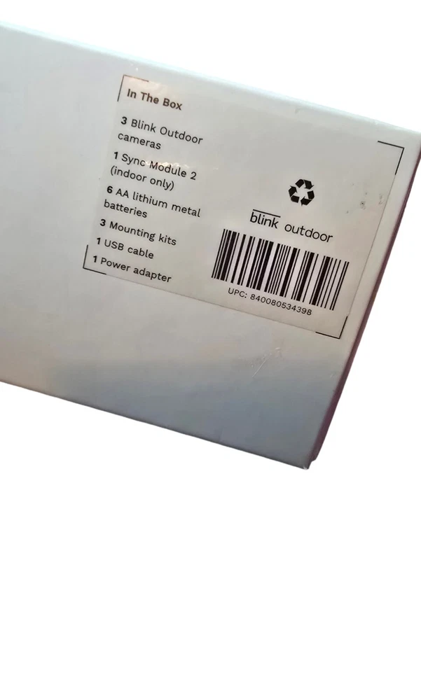 gtin13: 0840080534398 Smart Home Compatibility: Amazon Alexa Color: Black Features: Motion/PIR Activated, Waterproof Item Height: 7 cm Connectivity: Wireless Location: Outdoor & Indoor MPN: B086DKSHQ4 Number of Cameras Included: 3 Brand: Blink UPC: 0840080534398 Power Source: Battery Item Width: 7 cm Type: Surveillance Camera Smart Home Protocol: Wi-Fi Year Manufactured: 2020 Surveillance Technology: CCTV Model: Blink Outdoor (3rd Generation)