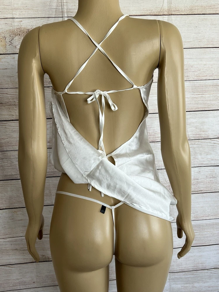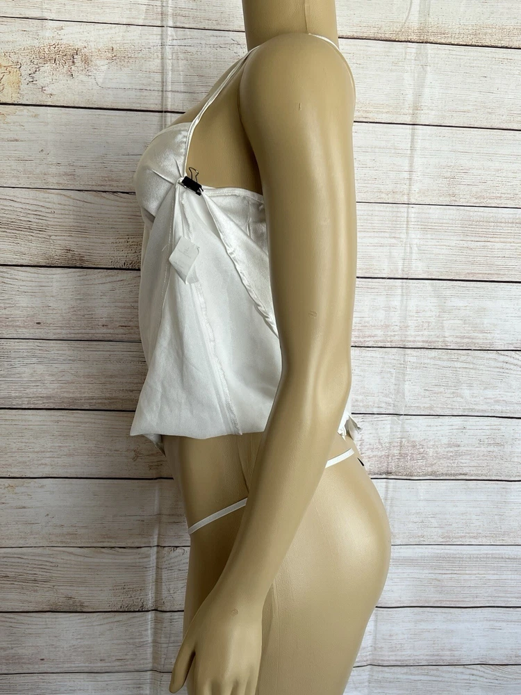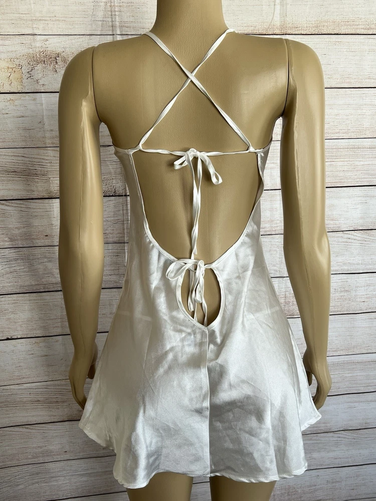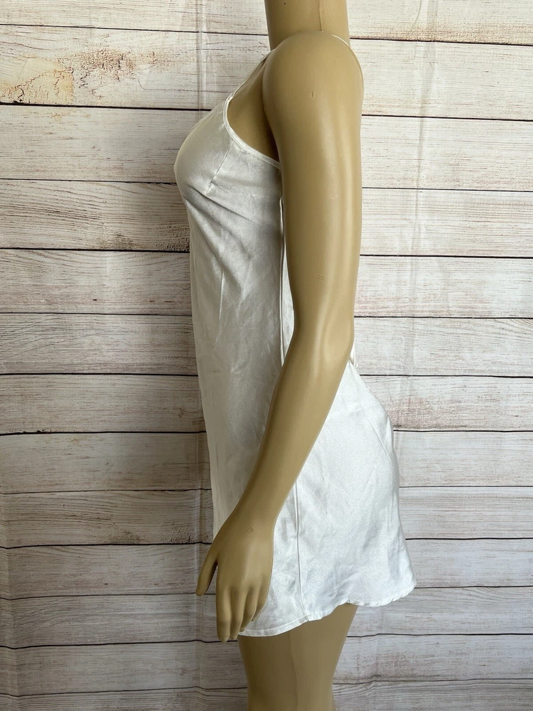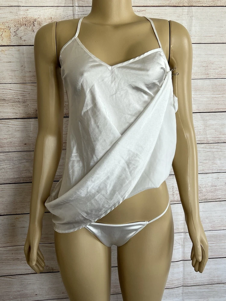 Elevate your nighttime attire with the BRANDY SUE APPAREL White Satin Nightgown. Designed with a timeless chemise style, this elegant gown is the epitome of feminine charm, featuring a smooth satin fabric that glides gently against your skin. Ideal for any season, its versatile white hue complements a wide range of decorums, ensuring you a comfortable yet stylish addition to your sleepwear collection. Crafted for those who appreciate the blend of sensuality and comfort, this nightgown is a size small, tailored to fit with a pull-over closure for ease of wear. Its solid pattern and sleeveless design affirm its classic appeal, while the nylon material promises durability and a gentle touch against the skin. Whether it's a wedding night or a simple night's rest, this gown is a sophisticated choice for any intimate occasion.