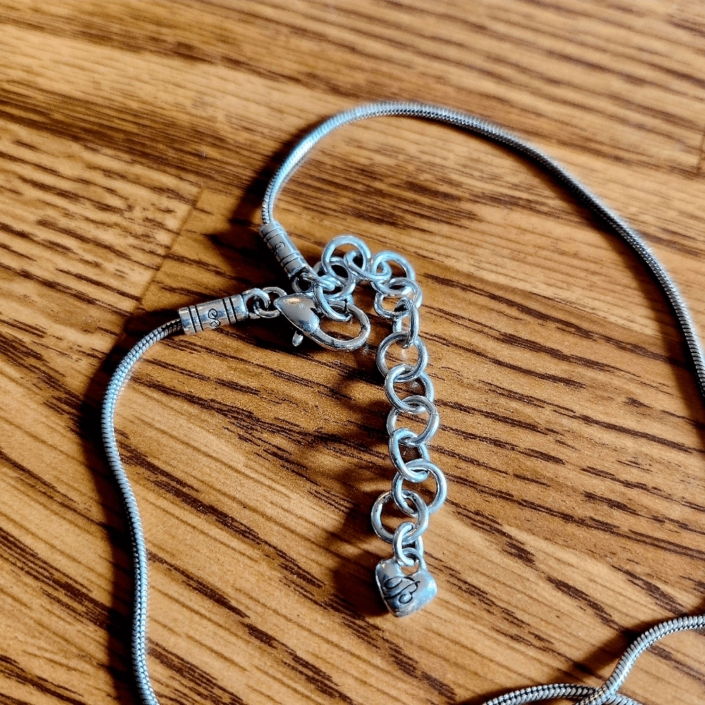 Item Description: Beautiful "Mingle" Silver Scroll Necklace from Brighton Condition: Very Good, Used, Slight ware to finish Approximate Measurements: Length - 16 to 18 inches Pendant Length - 1.5 inches Material: Silver Plate Special Features: Beautiful Silver Plate finish, Scroll design, tear drop shape, Cut-Out, Fluid Chain, Etched End caps, lobster claw clasp, extension, Brighton charm at nape. Lovely and Comes with Brighton Jewelry Bag shown 😍 JEWELRY SPECIAL: Bundle 3 items, least expensive is Free plus $5 off Shipping! Let me know if you need help with the Offer Price!! ⚘️Reasonable Offers Always Welcome⚘️ 💓Love Brighton? Browse My Listings!