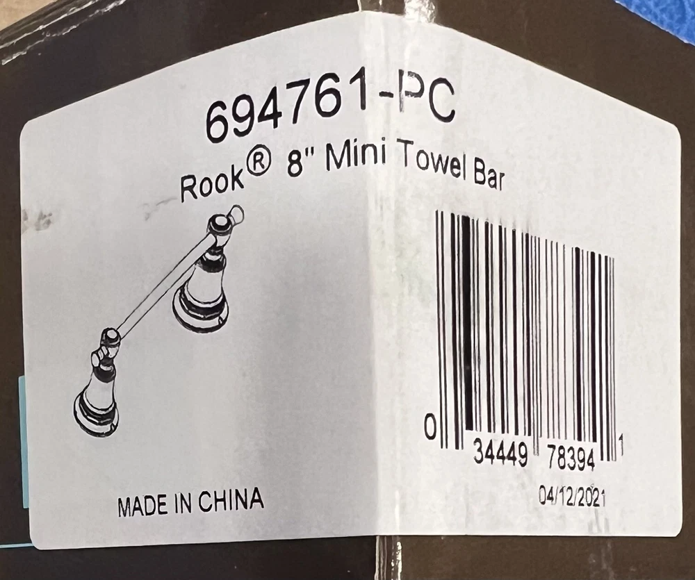 BRIZO (customer change) CHROME 8” TOWEL BAR #694761-PC FOR BATH/BAR, C-pics. THIS IS A NEW ITEM NOT USED OR DAMAGED, OPENED FOR INSPECTION AND PICTURES. CUSTOMER CHANGED MIND SO YOU SAVE.