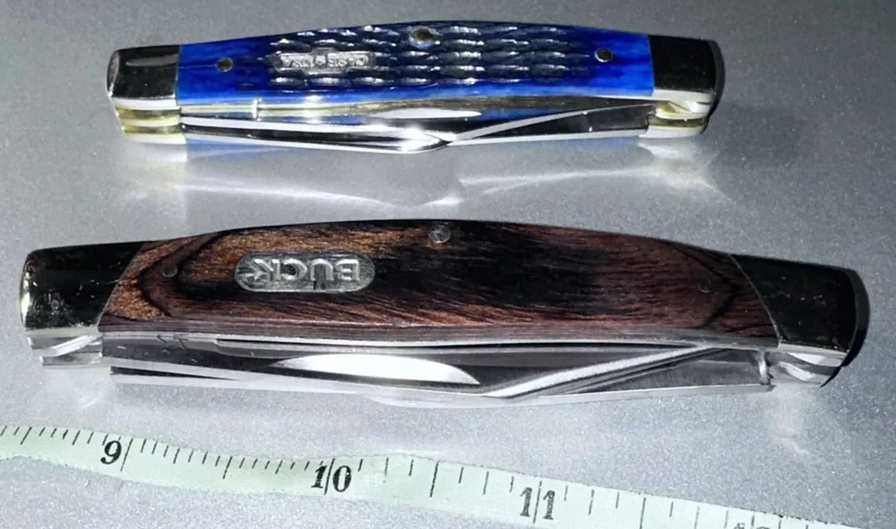 2-BRAND NEW NEVER USED 100% MINT CONDITION- BUCK AND CASE BRAND NAME TRAPPER 3- BLADES KNIVES! **** THESE ARE BOTH $$$ KNIVES ANS HIGHLY SOUGHT AFTER EDITIONS JUST LOOK AT ALL PICS AND USE ZOOM FEATURE FOR CLOSE UPS OF EAXH PICS FOR BETTER DETAILS **** NOTE: BOTH KNIVES ARE BRAND NEW W/OUT BOXES (SEE PICS 100% NEW!!) 1-BUCK&1-CASE 6344 KNIVES - NEW ITEMS- -AWESOME COMBO DEAL/#BU346RWS-USA-NEW W/OUT BOX NEVER USED KNIFE #1-: - BUCK KNIFE - NEW ITEM FROM BUCK - VANTAGE-AVID LARGE - 4 3/8" Closed length. LINERLOCK, Brushed finish stainless steel blade with Thumb slot, CNC contoured handles with Dymondwood inserts, BUCK shield inlay, Stainless pocket clip. This knife is great looking, good feel in the hand and quality made with smooth action. MADE IN THE USA #BU-346RWS [MSRP=$99.99] KNIFE #2- NEW W/OUT BOX Case XX 6344 Stockman Knife 2006 Rogers Corncob Blue Bone-NEW W/OUT BOX This knife for auction is a 2006 issue Case Blue Bone 6344 3 Blade Stockman, 3 1/4" closed, featuring the great looking Case "Rogers Corncob" Jigged Blue Bone (cattle bone) handles and the nickel silver Case USA Bowtie shield. This Case Blue Bone 6344 is stamped on the front tang of the master Clip blade with Case XX and 4 X's, dating it as a 2006 issue Case knife. The rear tang of the Sheepfoot blade is pattern stamped with USA 6344 SS while the small Spear blade is stamped with SS. All 3 blades are stamped and all 3 have good "walk and talk" snap. Please look at all the pictures and use the zoom feature to determine condition/style/size for. This came from a clean smoke/pet free household. Thanks for looking please checkout my other items I have listed & save on shipping costs. Any custom duties or taxes are the buyers cost, so please check your country import fees/taxes.