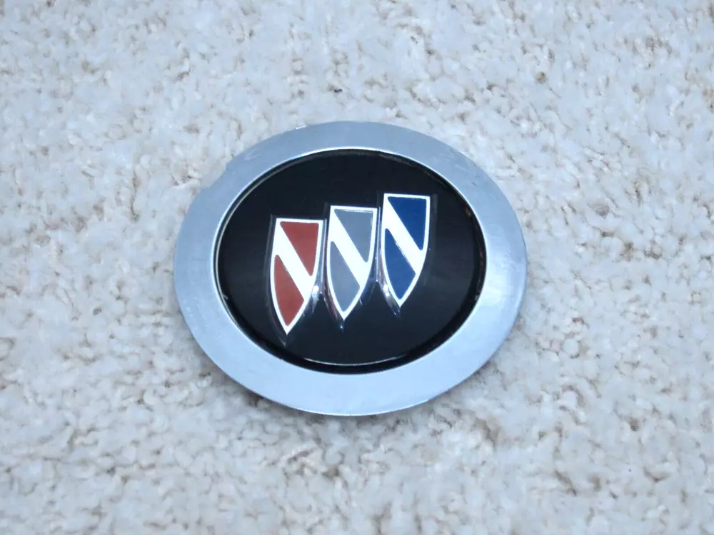 This is a GM Buick hubcap center cap with OEM part number 22532104, suitable for models like Century, Electra, Lesabre, and Skyhawk. It is a multicolor cap featuring the Buick emblem, designed for easy installation without tools. The lightweight cap is car wash safe and can be placed on the rear, left, front, or right side of the vehicle.