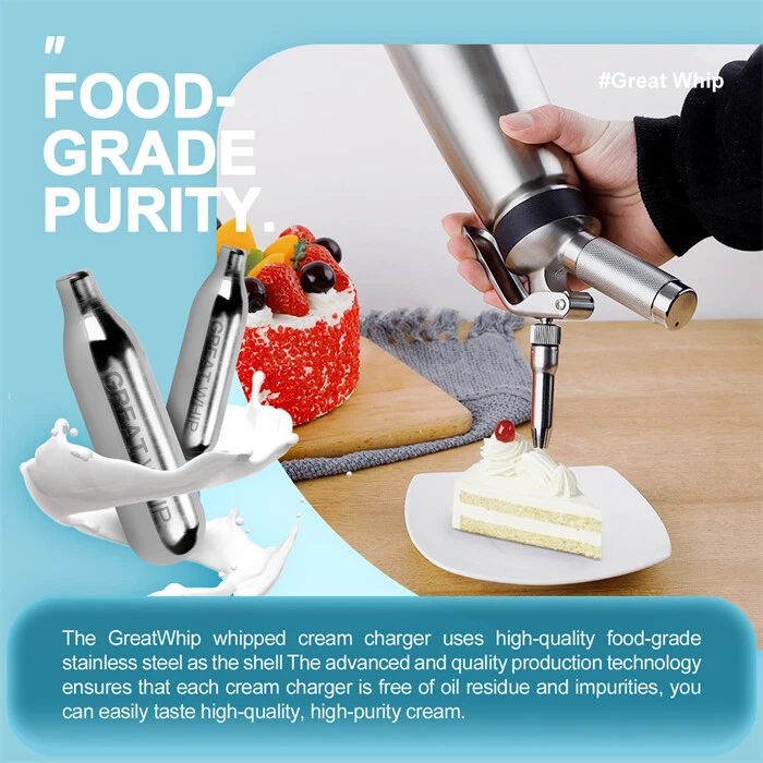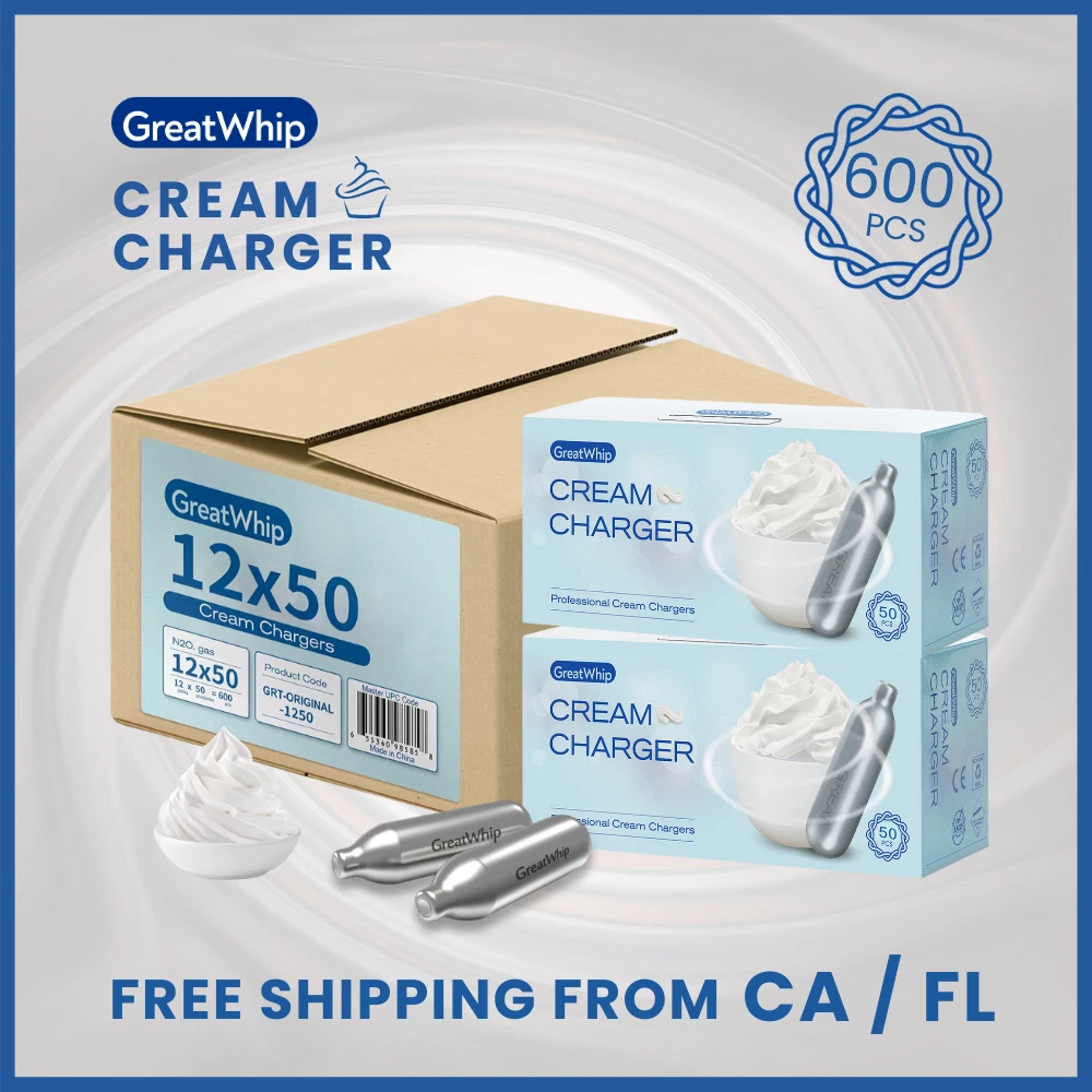 GreatWhip The Most Recommended Seller Advance Cleaning Tech Reliable Supplier 8g Whipped Cream Chargers Full Case 600 Pcs Randomly 50 pack/24 pack Perfect Bulbs, Super Pure, New Date, Good Condition · SHIPPED FROM PA / FL / CA ★★★ FEATURES ★★★ ✔ FOOD-GRADE & LONG SHELF LIFE GreatWhip whipped cream chargers are made with food-grade compliance, and production standards: ISO/CE/GB/DOT. Each cream charger has a long shelf life of 5 years so you can use them over a period of time. ✔ LEAKAGE DESIGN The cream charger has a treated closed structure that ensures gas will not leak in the shelf period of the cartridges and make you create more cream. ✔ ZINC COATING & 100% RECYCLING STEEL Zinc coating can prevent rust on the top of the charger due to humidity in the kitchen, with recyclable stainless steel, you can solve the problem of damp during use or storage. ✔ SHOW YOUR CULINARY TALENT Each cream whipper is filled with the purest, highest quality. That is why you will not have a hard time making chocolate or vanilla, mint, or Bailey’s flavored cream whipper. Cocktail foams, airy sauce, mousse, and hot or cold foam can be made easily, too. ✔ UNIVERSAL COMPATIBILITY Compatible with all professional whipped cream makers including iSi, Whip it, Liss, and Kayser. From now on, you can easily finish the whipping cream making in a few seconds and without leaving odors or contaminants in the dispenser. Legal Disclaimer All customers must read and accept the misuse disclaimers before ordering. This product is only intended for use in food preparation and we only sale to adults over 18 years old . By placing an order, the buyer represents that, he or she is at least 18 years old; the product(s) will only be used in accordance with the manufacturer's instructions. GreatWhip assumes no liability associated with product usage. The buyer is liable and responsible for any loss, damage, or expenses of any kind, arising out of the use or misuse of any item. Contact us for a better price for bulk savings. What is GreatWhip SHIPPING Payments Excellent Customer Service Contact us What is GreatWhip GreatWhip is the home of premium gas including N20 , CO2 , Helium , N2 , Argon , Oxygen , etc at the very best prices, and ranges within the USA, AU and DE markets. We own and produce the highest products in our ultra-modern manufacturing facility, sold to CAN, USA, Europe, Asia, and Australia. We hold large stocks all year. We can offer you the highest quality products, at the lowest possible prices! Please feel free to contact us if you want to purchase stock in large volumes. We pride ourselves on providing the best quality customer service in wholesale pallet orders. We hope you enjoy your shopping experience with us. SHIPPING The item(s) you order will be delivered to the address you give when you place your order. Note this cannot be changed. Warehouse INFO: PA, FL, CA We usually shipped from the warehouse which is closest and fastest to you. We will endeavor to dispatch on the same day, depending on our delivery agent. Every effort will be made to deliver the goods as soon. Payments Please make payment within 24 hours, and ensure your telephone contact number is up-to-date as our Courier may call you before making the delivery. - PayPal payment accepted / eBay managed payments. Excellent Customer Service GreatWhip customer service team works hard to make sure you have a good shopping experience with us. Our customer service team also helps and answers all your questions about the product within 24 hours. Contact us Click Here to contact us via eBay.