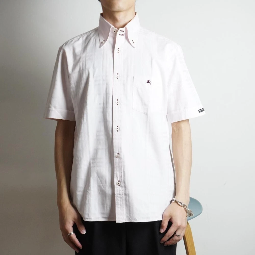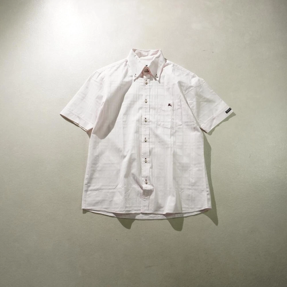 BURBERRY BLACK LABEL Check Short Sleeve Shirt Light Pink Men Size 2/S-M Used