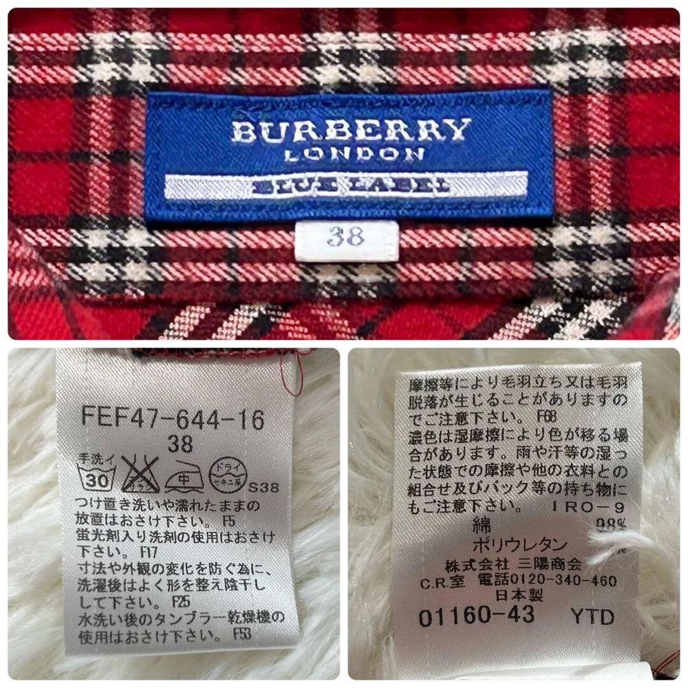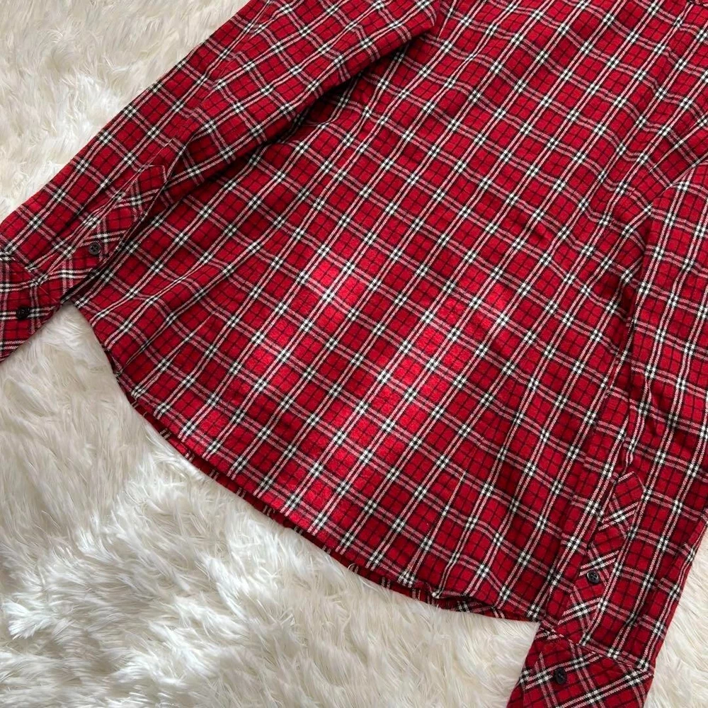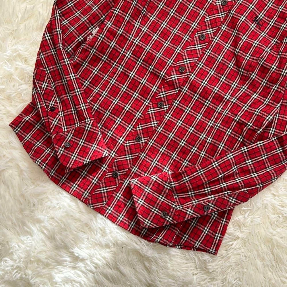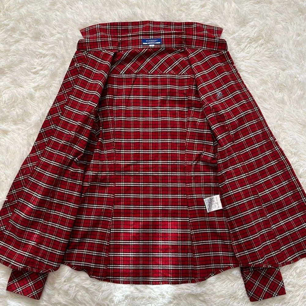 BURBERRY BLUE LABEL Long Sleeve Shirt Check Red Cotton Women Size 38 Used