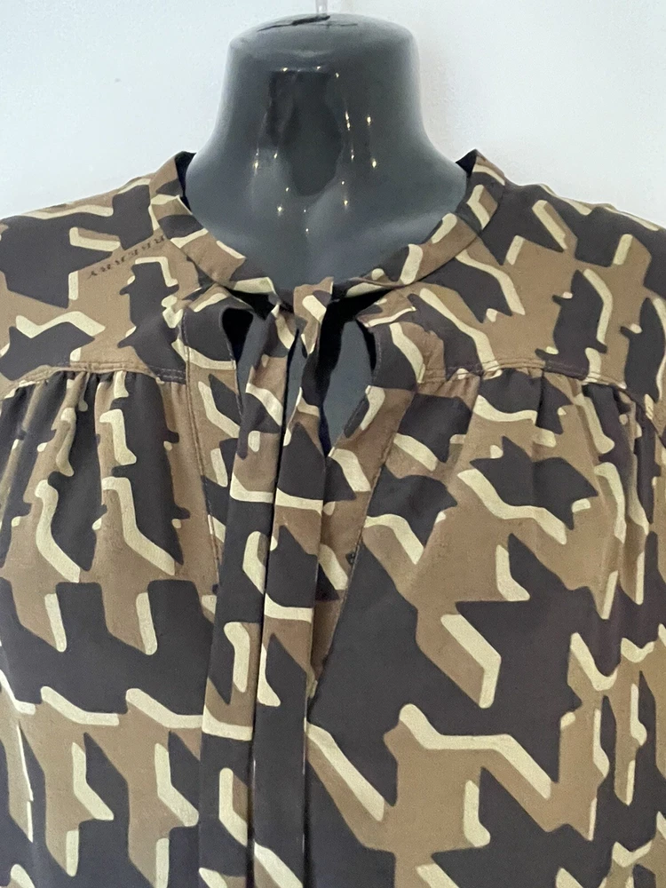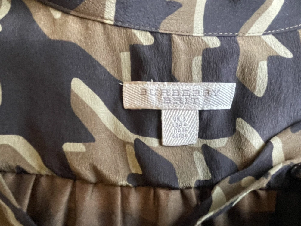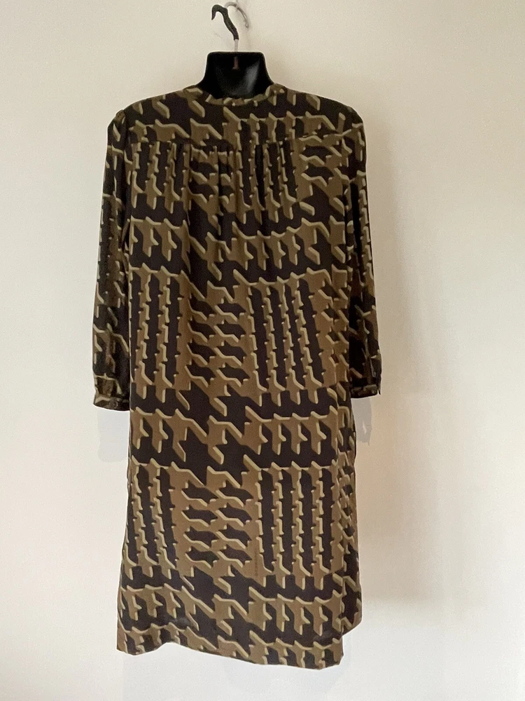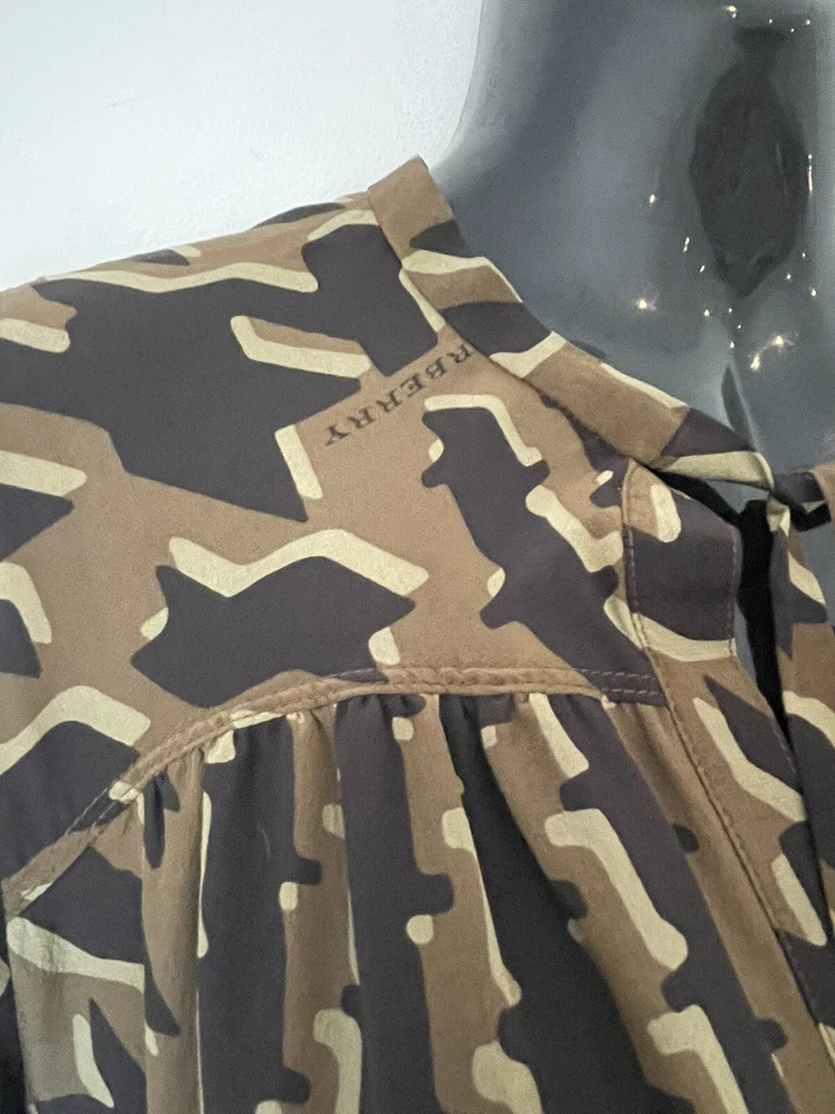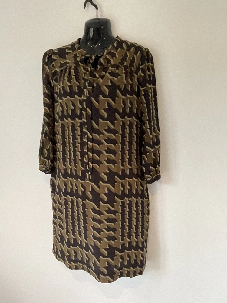 BURBERRY BRIT BLACK & BRONZE LONG SLEEVE SILK SHIFT DRESS V NECK WITH TIE SIDE POCKETS SIZE UK 8 MEASURES ACROSS THE CHEST PIT TO PIT 19'' + 36.5'' IN LENGTH DRY CLEAN LINED