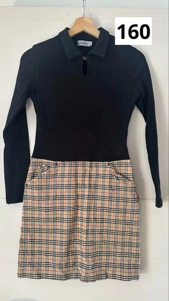 BURBERRY Docking Dress Black Nova check Cotton Girl Women Size 160A Used