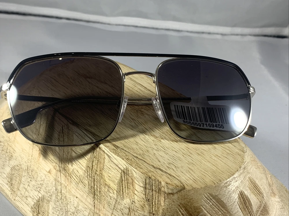 These sunglasses were used as displays in a store and were gently used. 100% Authentic as are all of my items. Appx $265.00 msrp. I would rate the lenses 9.9/10 and the frames are 10/10. The sunglasses come in a microfiber carrying bag. If you have any questions feel free to message me. The price is negotiable. These sunglasses are polarized. This item will be shipped quickly with care, please check my feedback. **SEE PICTURES - There may be a couple very minor spots on the lenses. Does not affect vision.** Size: 58-18-145 SKU: 1370 BURBERRY HOLBORN 10058G SILVER/BLACK FRAME W/GRAY GRADIENT LENSES BE3117 (1370).