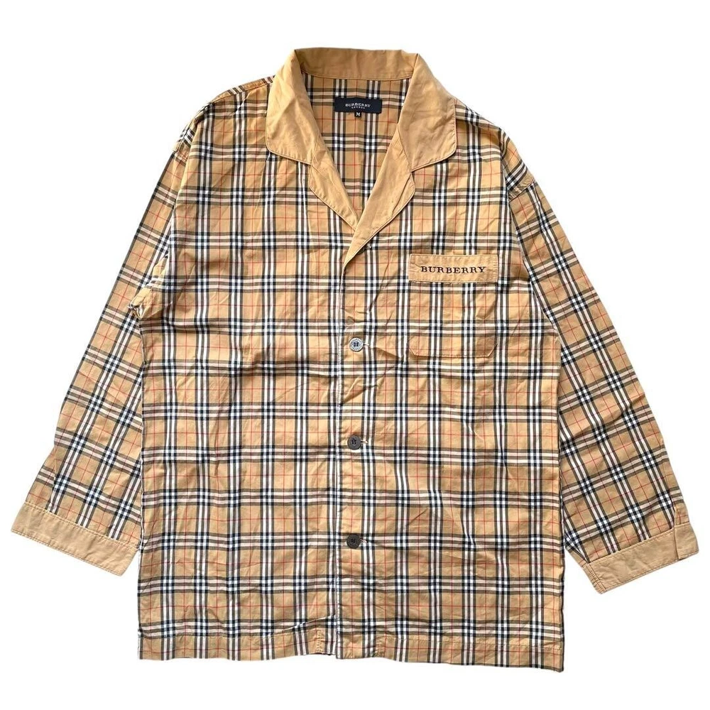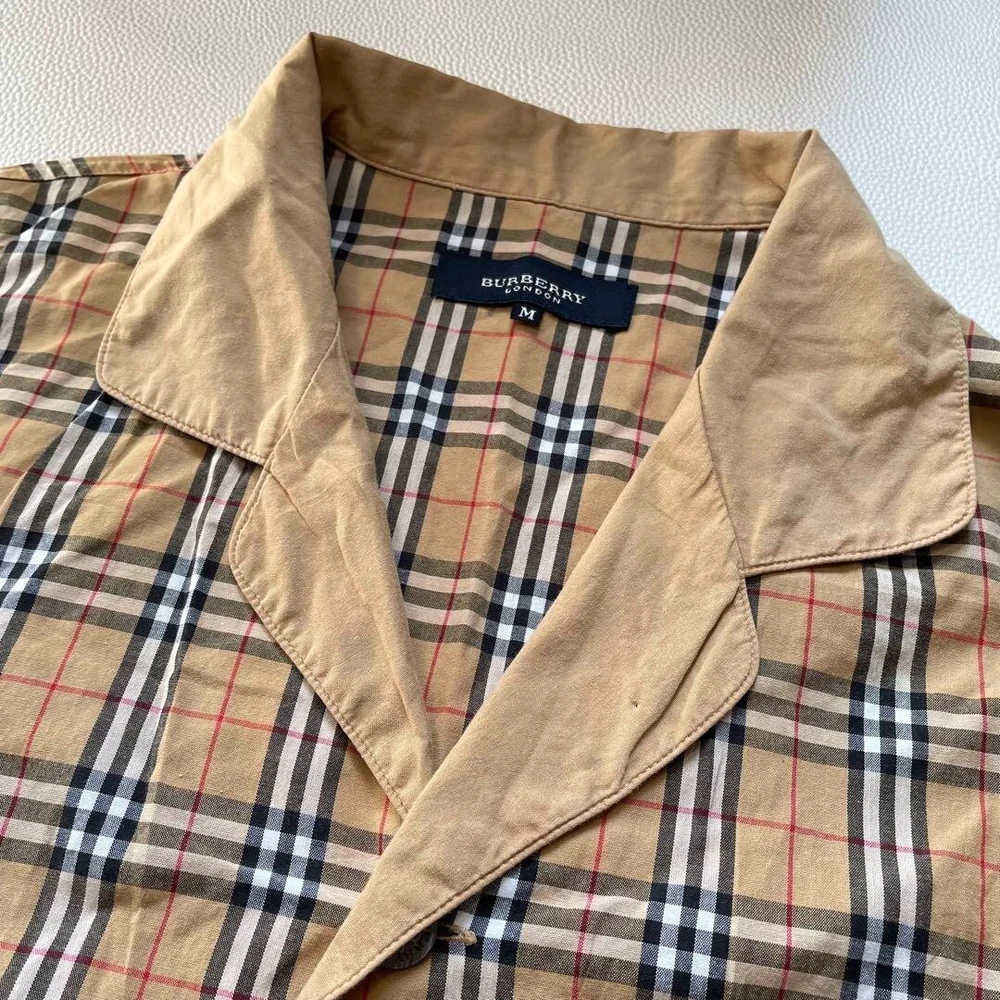 BURBERRY LONDON Nova Check Pajama Shirt Open Collar Shirt Beige Men Size M Used