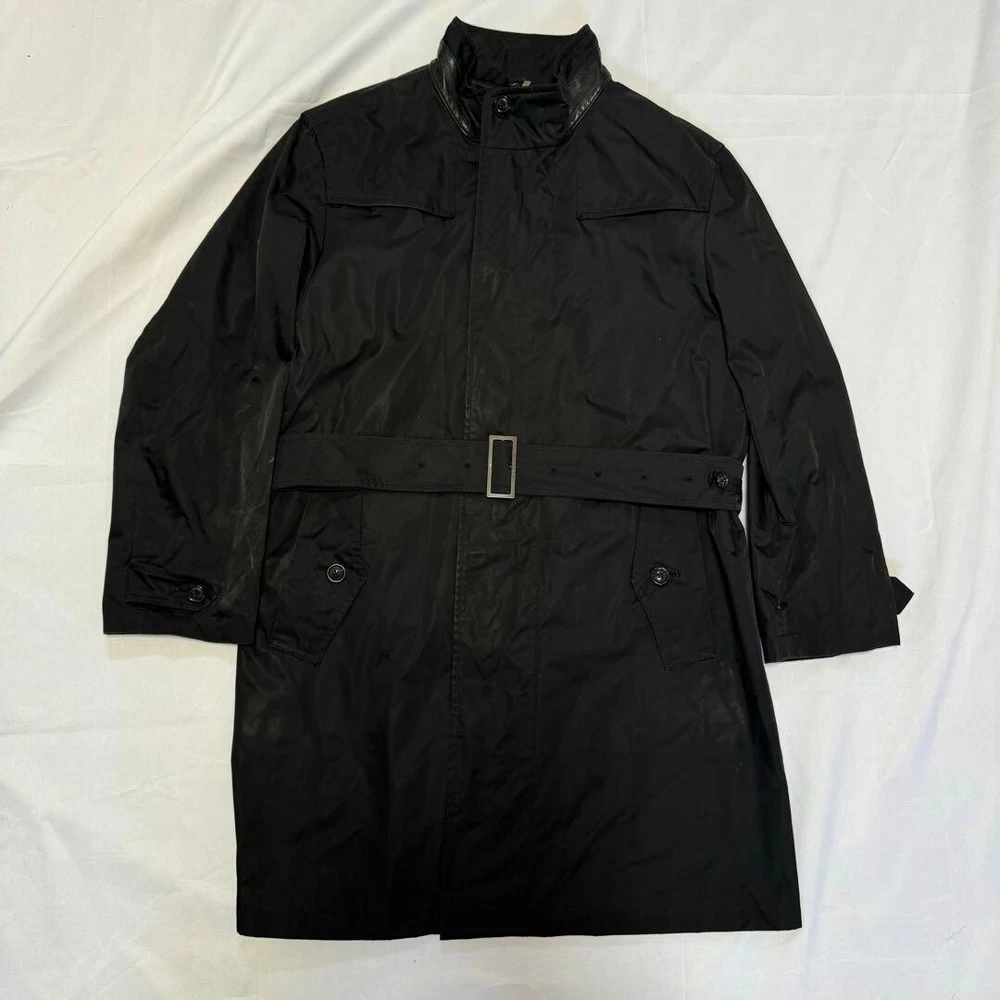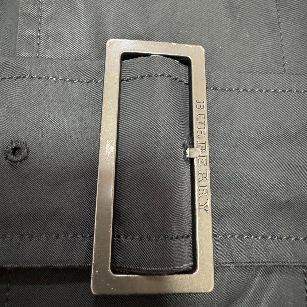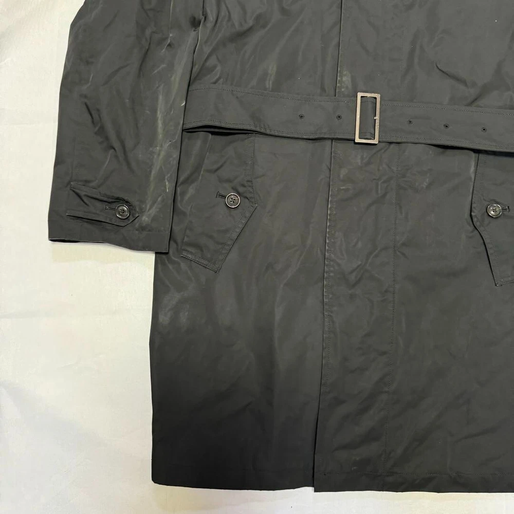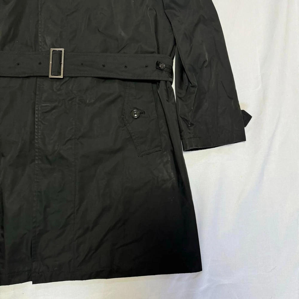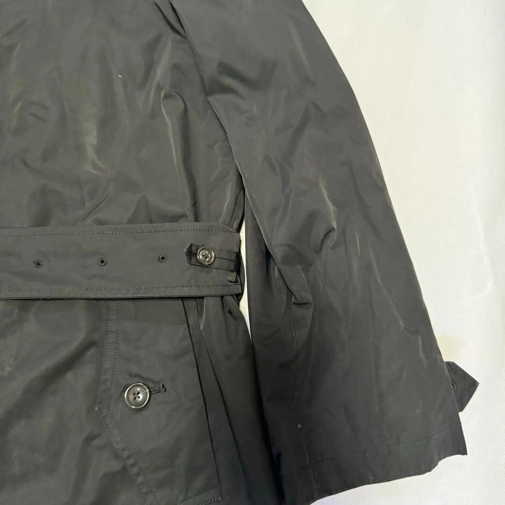 Type: Jacket Garment Care: NA Handmade: No Size Type: Regular Lining Material: NA Warmth Weight: NA Jacket/Coat Length: 38.5 in Size: L Season: Fall, Spring, Winter Product Line: NA Outer Shell Material: Polyester gtin13: Does not apply Personalize: No Performance/Activity: Walking Country/Region of Manufacture: Japan Chest Size: 39.3 in Fabric Type: NA Collar Style: NA UPC: Does not apply Color: Black MPN: NA Pattern: NA Department: Men Vintage: No Accents: Button Theme: NA Occasion: Business, Casual, Travel Closure: Button, Zip Features: Belted, Collared Model: NA Brand: Burberry London Fit: Slim Style: Trench Coat Insulation Material: NA
