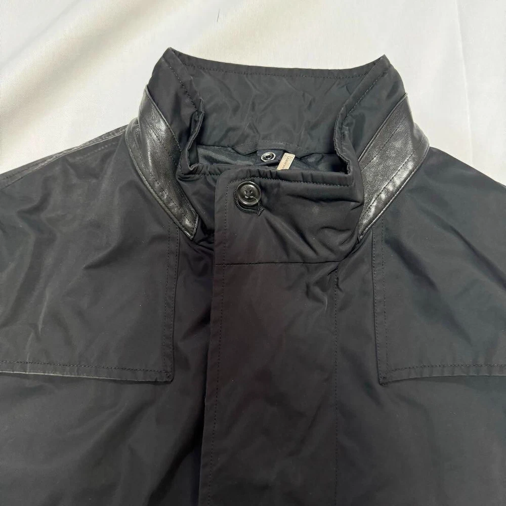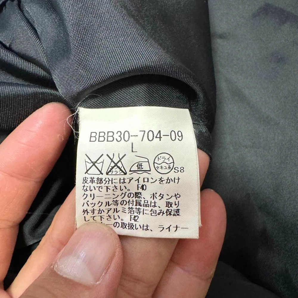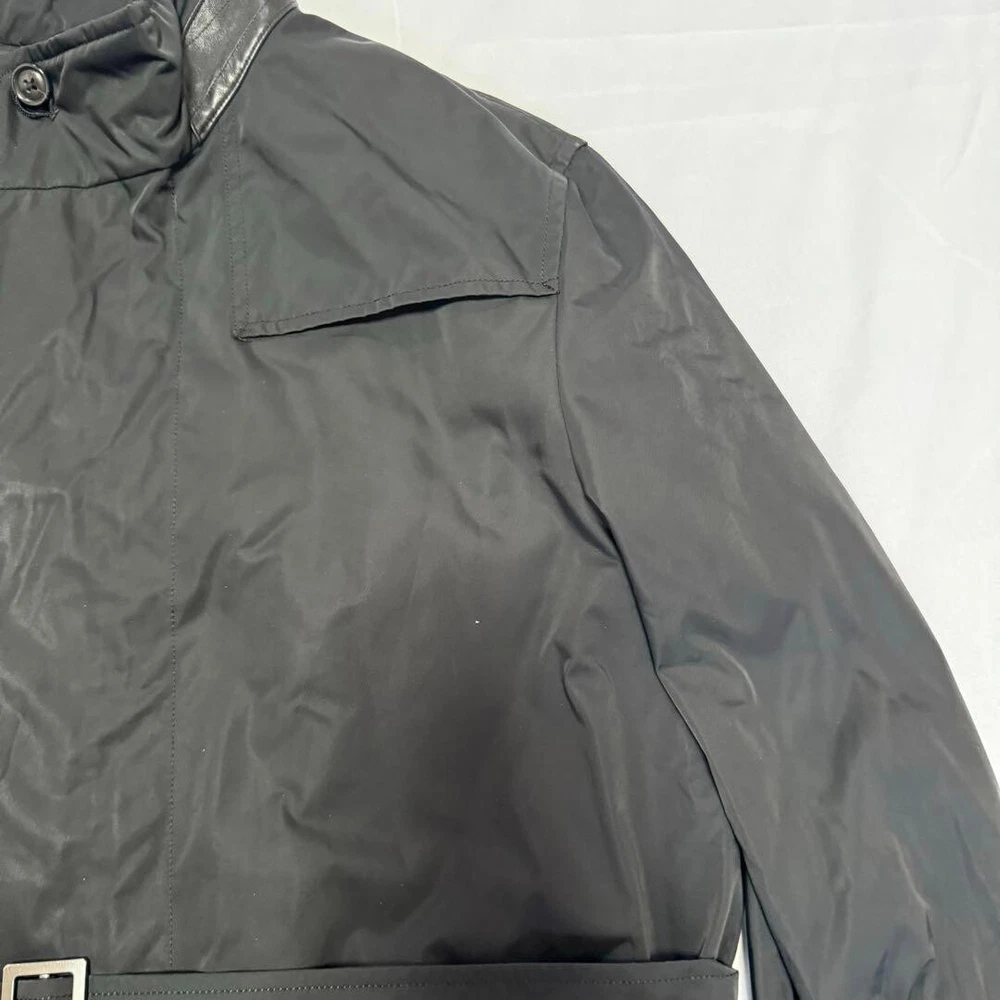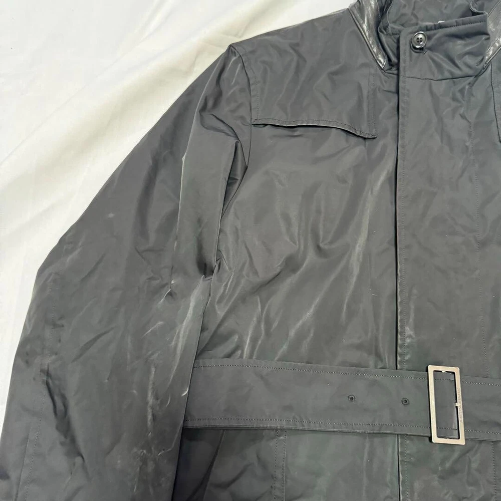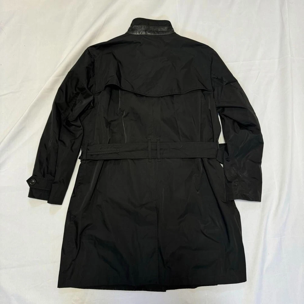 Type: Jacket Garment Care: NA Handmade: No Size Type: Regular Lining Material: NA Warmth Weight: NA Jacket/Coat Length: 38.5 in Size: L Season: Fall, Spring, Winter Product Line: NA Outer Shell Material: Polyester gtin13: Does not apply Personalize: No Performance/Activity: Walking Country/Region of Manufacture: Japan Chest Size: 39.3 in Fabric Type: NA Collar Style: NA UPC: Does not apply Color: Black MPN: NA Pattern: NA Department: Men Vintage: No Accents: Button Theme: NA Occasion: Business, Casual, Travel Closure: Button, Zip Features: Belted, Collared Model: NA Brand: Burberry London Fit: Slim Style: Trench Coat Insulation Material: NA