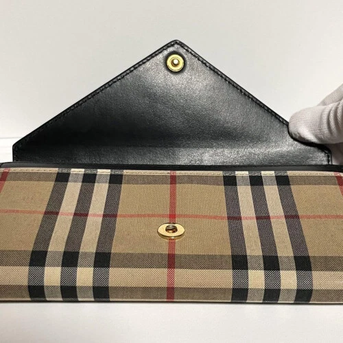 $ 104.74BURBERRY Nova Check Canvas and Leather Long Zip Wallet Beige 2811