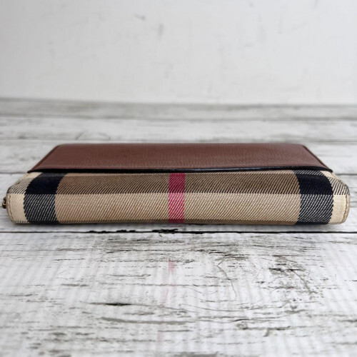 $ 101.39BURBERRY Nova Check Long Zip Wallet in Red Beige with Leather Trim 2804