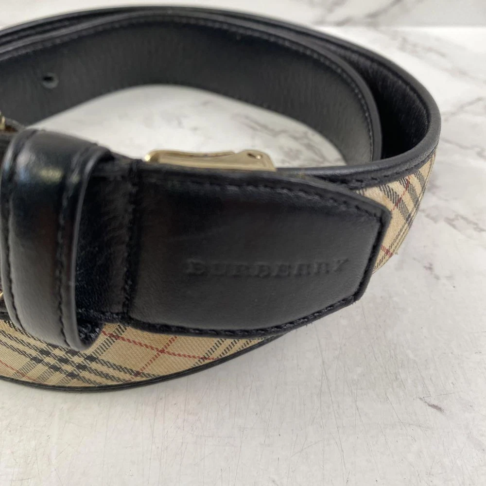 BURBERRY Nova Check Genuine Cowhide Leather Belt Used Excellent+ Auth Description **Product Details:** - **Color**: Black - **Condition**: Shows signs of use, with light stains visible in the photos. - **Measurements**: - Waist Size: Approx. 50 cm (19.7 inches) - Total Length: Approx. 98 cm (38.6 inches) - Width: Approx. 3 cm (1.2 inches) - **Additional Notes**: - Features three belt holes. **Description**: This black belt offers a sleek and minimalist design, suitable for various outfits. Despite minor signs of wear, it remains functional and stylish for daily use. All of Items Will be Shipped From Japan. Please check with the image. About the condition Damages such as stains, scuffs, and scratches are listed only if they are noticeable. Please understand that this is a used item, so there may be some inconspicuous scuffs or signs of use even if they are not listed. Please note that there may be unnoticeable scuffs and scratches on the item even if they are not listed. Please check the images for details of the condition. Note: This is a used item. We have tried to describe the condition of the item with detailed pictures and text as much as possible, but please understand that there may be some things that we have overlooked because it is a used item. Please note that measurements are taken by our company, so please understand that there may be some errors. If there is no special description about the accessories, only this item will be included. Colors may look different from the actual item depending on your monitor and shooting environment. Payment Please pay within 7 days of first purchase. ebay payments We can not separate invoice. Please understand. Shipping&Handling ■Speedy Shipping Shipped by DHL, FedEx, or Japan Post with tracking number. *If your location is designated as remote, additional shipping charges may apply. (Some areas such as Australia, Canada, Chile, and remote areas of the U.S.) I will pack it carefully. ■Economy Shipping (Japan Post) Economy Airmail 15-40 days without tracking Additional shipping fees may apply for countries/areas where delivery by Japan Post is not available. Handling Time Please check the categories of Shipping and payments. International Buyers - Please Note: Import duties, taxes, and charges are not included in the item price or shipping cost. These charges are the buyer's responsibility. Please check with your country's customs office to determine what these additional costs will be prior to bidding or buying. If you have any questions about products, shipping, etc., please do not hesitate to contact us by message. Thank you for your understanding.