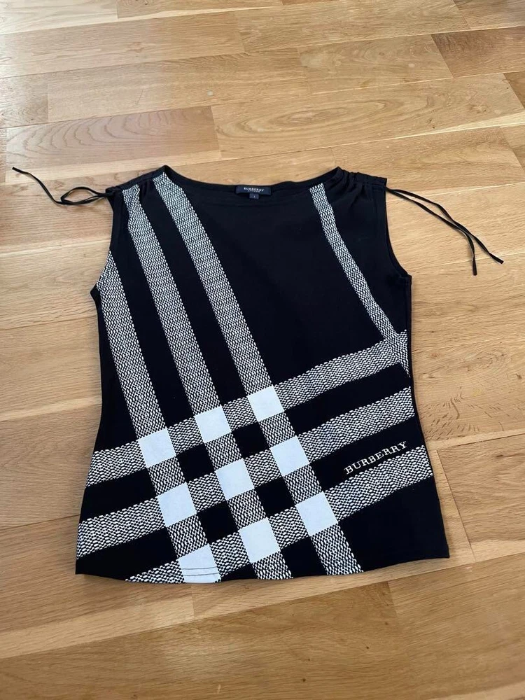 gtin13: Does not apply Season: Fall, Spring, Summer Strap Type: NA MPN: NA Brand: Burberry Fabric Type: NA Closure: Pullover Style: Basic Personalize: No Size: 1 Theme: NA Vintage: No Occasion: Business, Casual, Travel Sleeve Length: Sleeveless Material: 100% Cotton UPC: Does not apply Features: NA Garment Care: NA Handmade: No Type: T-Shirt Color: Multicolor Department: Women Pattern: Check Fit: Slim Size Type: Regular Neckline: Crew Neck Character: NA Sleeve Type: NA