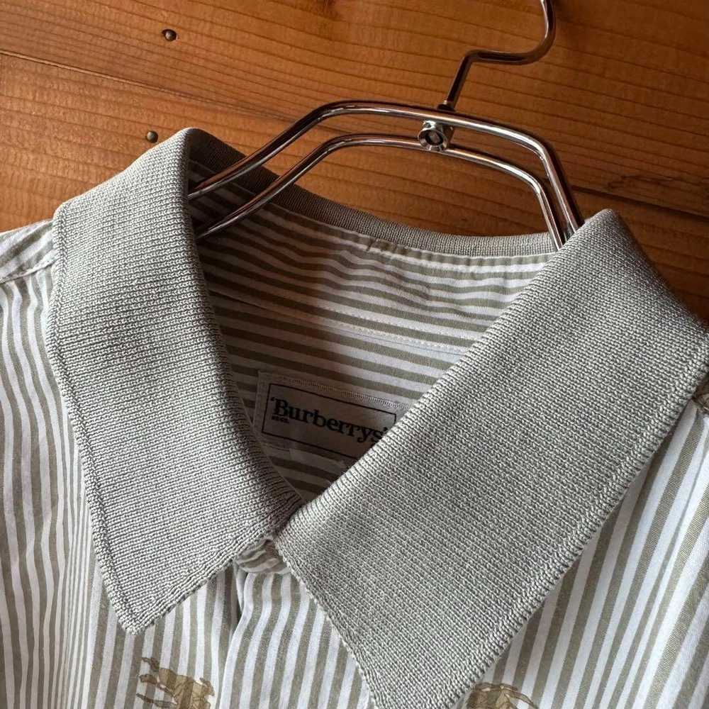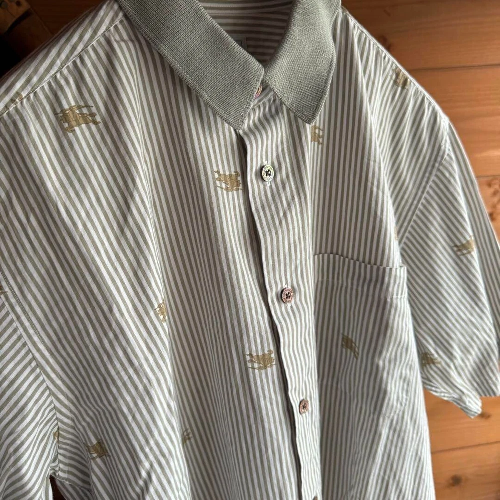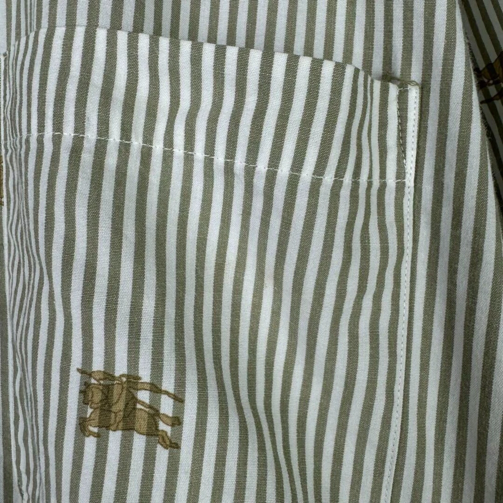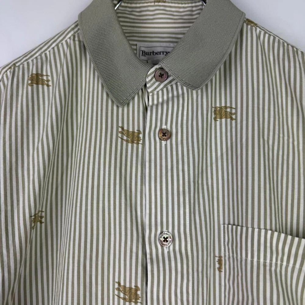 BURBERRYS Short sleeve Shirt Striped Horse Logo Green Cotton Men Size MA Used