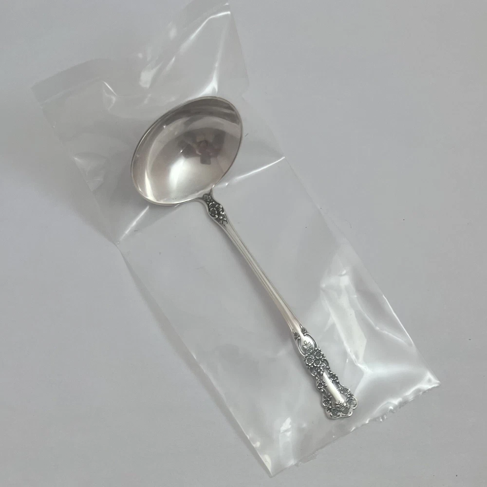 Presented is a Lovely Silver BUTTERCUP Cream Sauce Ladle Sterling Silver by GORHAM SILVER Measures 5 3/4" Lion, Anchor, G Hallmarks Like new beautifully professionally polished in a sealed bag. Perfect for holiday entertaining and parties! Buttercup sterling silverware by Gorham is an excellent example of the Greco-Roman style. T he charming Buttercup flatware design features an intricate design of buttercups, scrolls, and leaves. Making its debut in 1899 during the reign of Queen Victoria of England. Thanks for stopping by!
