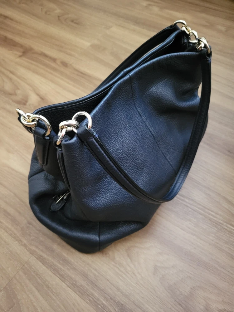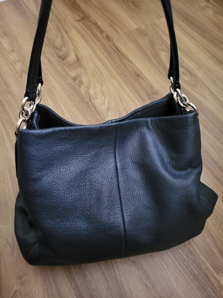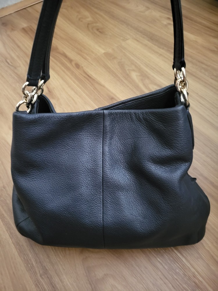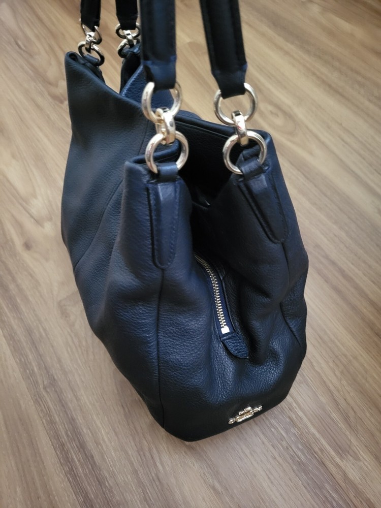 The Coach Lexy Classy Black Genuine Pebble Leather Purse Shoulder Bag is a stylish and luxurious accessory designed for women. Crafted from high-quality leather with a pebbled finish, this shoulder bag exudes sophistication and elegance. The solid black exterior color adds a sleek and contemporary touch to any outfit, making it a versatile piece for any wardrobe. The Coach Lexy model is known for its sleek design and practicality, perfect for everyday use or special occasions. Upgrade your style with this timeless and chic purse. Buy it now!