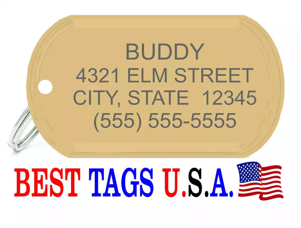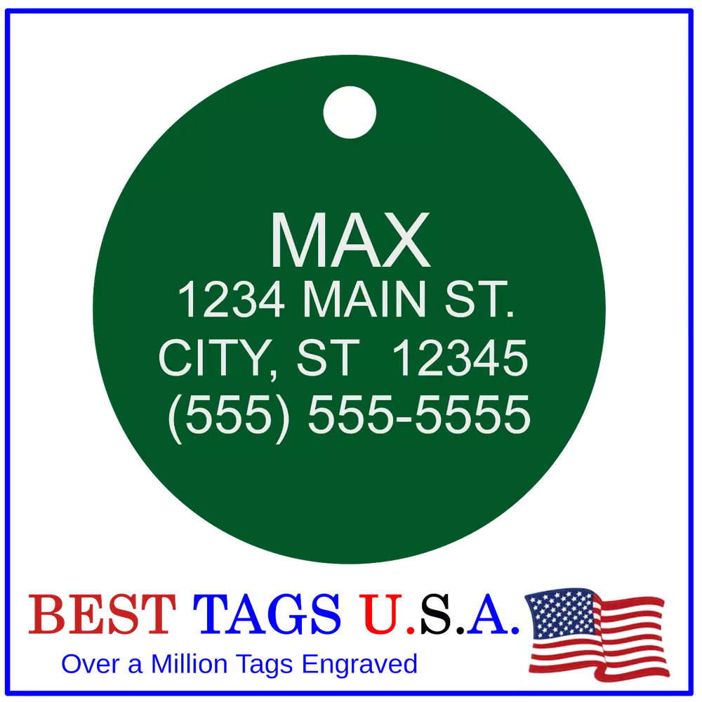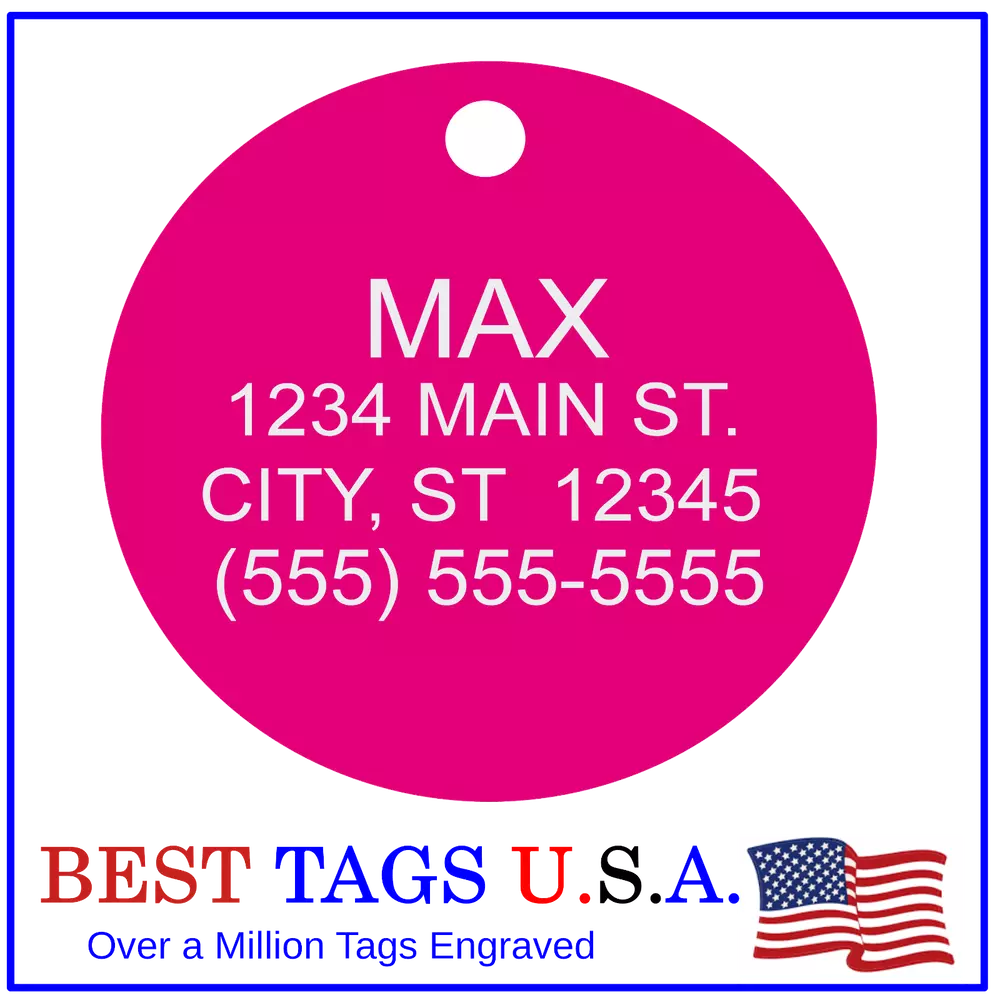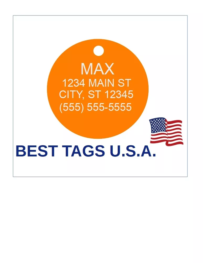 BEST TAGS PERSONALIZED- ENGRAVED WITH REFLECTIVE SAFETY TEXT M A D E I N U. S. A. >>>WE SHIP USPS WITH TRACKING<<< NOTE: Tags are engraved and shipped Friday of each week. Handling time will vary from 1 to 7 days, depending on what day you order. YOUR CHOICE OF: MILITARY DOG TAG (2" x 1.1") 1" Diameter Small CIRCLE 1.5" Diameter Large CIRCLE GUITAR PICK (Standard guitar pick size) 1" HEART ALL TAGS INCLUDE A KEY RING UP TO 5-Lines of Text Engraved per side on Military & 1.5" Circles, 4-Lines on Guitar picks & 1" Circles, 3-Lines on Hearts 2-SIDED TAGS available in drop-down menu if you want engraving on both sides. DEEP DIAMOND ENGRAVED - THE BEST! -LONG LASTING- WON'T RUB OFF LIKE CHEAP LASER ENGRAVING OR INK STAMP =YOU CAN "FEEL" OUR ENGRAVING= TAGS ARE MADE OF LIGHT-WEIGHT DURABLE Anodized Aluminum HOW TO ORDER: 1. Above please select TAG , C O L O R and QUANTITY 2. ENTER your personalization text in the grey box above -OR- You can enter your engraving info at checkout in the Message to Seller BOX. please be sure to CLICK " Message to Seller" -- Or -- Use eBay " Contact Member/Seller " and send the tag information to us ( best_tags) Please read the tag parameters below: ( spaces count as characters ) Less is more on tags. Less Text = LARGER TEXT . 2-SIDED TAGS available in drop-down Please specify your engraving for FRONT and BACK sides, otherwise we will engrave the same info on both sides. Military Style Dog Tag: up to 5 Lines, 24 characters maximum per line Large 1.5” Circle: up to 5 lines, 20 characters maximum per line Small 1” circle: up to 4 lines, 16 characters maximum per line Guitar Pick: up to 4 lines, 14 characters maximum on LINES 1 & 2, (12) on LINES 3 & 4. Heart: up to 3 lines, 14 characters maximum per line Please check for accuracy *We engrave exactly how you enter your text. *Sometimes we need to make layout adjustments to make your tag look its BEST and will contact you if it's a big change. If you don't want engraving enter "blank" 3. Click "Buy It Now" and proceed to check out. 4. At the CHECK OUT Screen *Review items and engraving info If you have a problem at checkout DO NOT CANCEL YOUR ORDER . Please message us directly. We are always on the lookout and i f we don't receive your engraving information, we will contact you. If you have ANY problem during your transaction, Please don't open a case until you message us directly and give us a chance to resolve it. We will take care of it. Your satisfaction is VERY important to us. ***We offer DISCOUNTS on Larger QUANTITY orders. Contact us for the BEST PRICE Tags are deep engraved which means that our engraving machine cuts into metal for a tag that will last. The color of the engraving is reflective silver or metal. Engraving on chrome and gold tags tends to be inconspicuous (blends into the tag more) The text on engraved tags can appear black, white, grey or silver in different lighting. We do not engrave emoji's or special characters. Thank You For Supporting American Manufacturing We really appreciate your business! C ustom Pet Tags, Military Dog Tag, Personalized Dog ID Tags Aluminum Dog Tags & Charms, Dog ID Tags, Engraved ID Tags, Pet Tags with Engraving, Pet Tags Dog Tags, Cat Tags, Cat ID Tag, Dog Tags and Charms, Pet Tags Dog Supplies, Cat supplies, Pet supplies, Blank Dog Tag, Blank Pet Tag, Blank Cat Tag, cat tags personalized, name tag, name tags, name bade, custom engraved, custom engraving