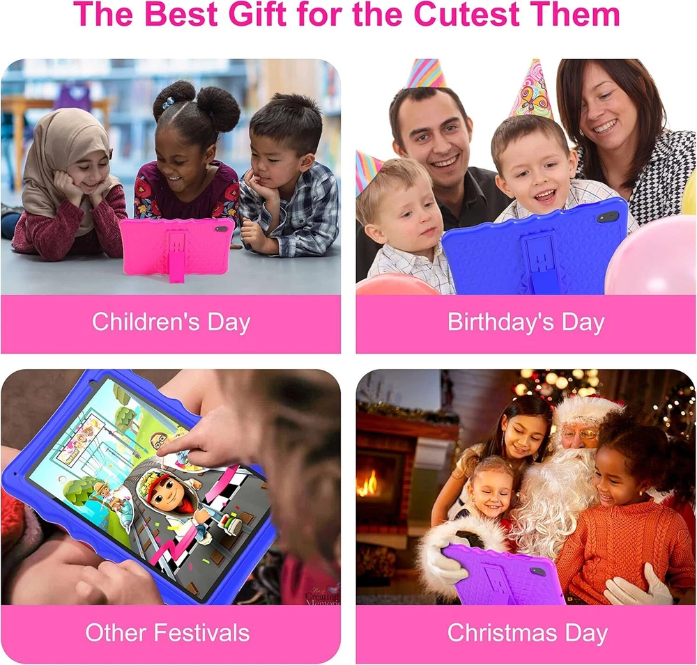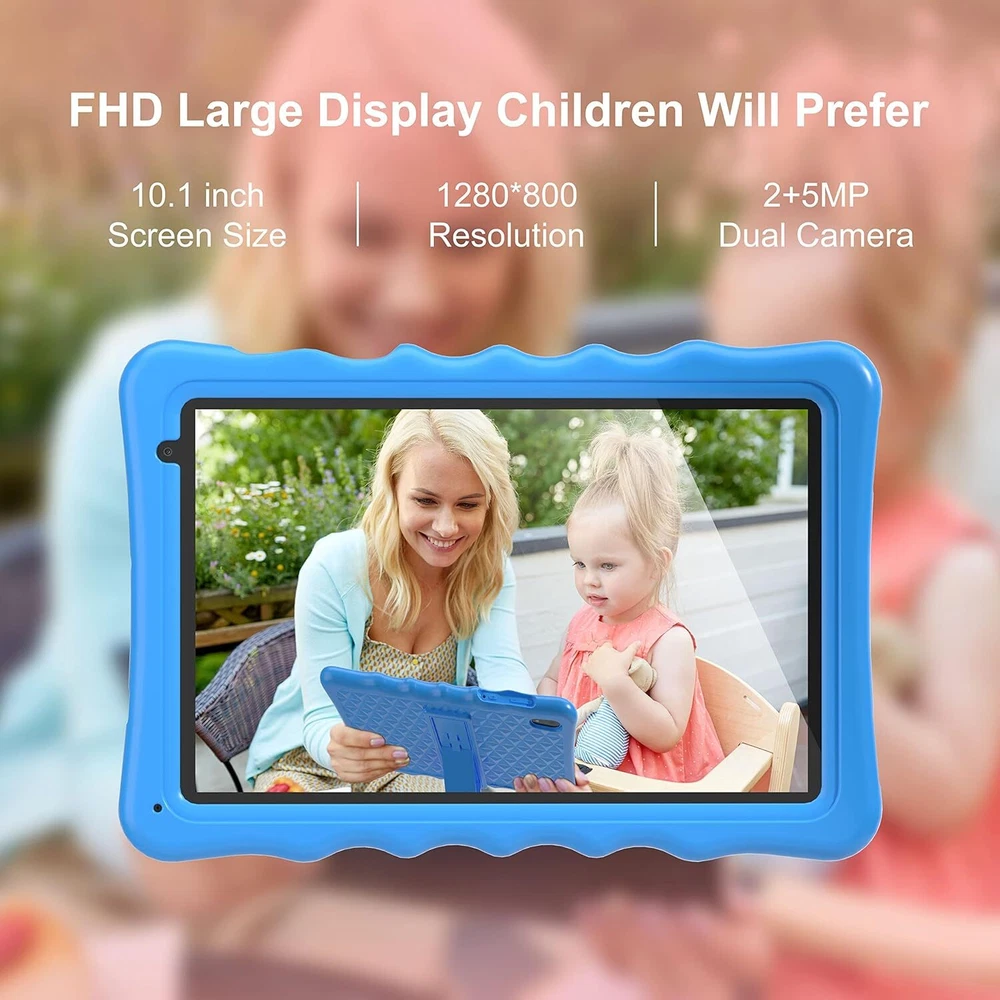BYYBUO Kids Tablet, 10.1 inch Android 13 Tablet for Kids, 2GB RAM 32GB Pink Product Details Standing screen display size: 10.1 Inches Screen Resolution: 1280 x 800 pixels Max Screen Resolution: 1280*800 Pixels Processor: 1.8 GHz RAM: 2 GB Chipset Brand: Allwinner Card Description: Integrated Wireless Type: 802.11n, 802.11b, 802.11g Average Battery Life (in hours): 120 Hours Brand: BYYBUO Model Name: A70W Memory Storage Capacity: 32 GB Screen Size: 10.1 Inches Display Resolution Maximum: 1280*800 Pixels ★【Tablet for Kids】This kids tablet is specially designed for kids, with a 1.8GHz quad-core processor and a GMS-certified Android 13 system. 10.1-inch, 1280x800 IPS Full HD touch screen, 2GB RAM, 32GB ROM, 6000mAh Battery, wifi, bluetooth, dual camera, E-Book. Support various video decoding formats and picture formats. ★【Durable Tablet with Shockproof Case】Food-grade silicone case and holder. The case will reduce the possibility of the tablet being damaged while keeping the tablet portable. And the stand behind the tablet lets kids watch and video chat hands-free. This is the best gift for kids to help them develop skills and imagination through happy play. ★【Multi-Functional Kids Tablet】In addition to learning, the children can also enjoy reading, watching videos, and gaming. Parents can download a large number of up-to-date educational apps from Google Play. such as YouTube Kids, Khan Academy Kids, ABC Mouse, Netflix, Disney+, Minecraft, and Hulu. We have also pre-installed some apps for you, such as YouTube, Kids Space, and so on. The great tablet will keep your child entertained and learning for hours; your kid will fall in love with it! ★【Cost-effective Android Tablet】This 10.1 inch tablet is a good value for money; if you're looking for a children's tablet for your children, this is a good option. The tablet is simple and easy to set up, and kids can use it quickly and proficiently. These are good gifts for kids for Christmas, Children's Day, Halloween, Birthdays, and other festivals!
