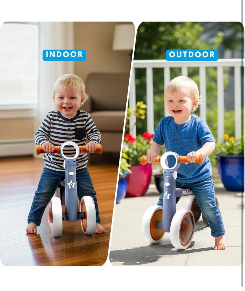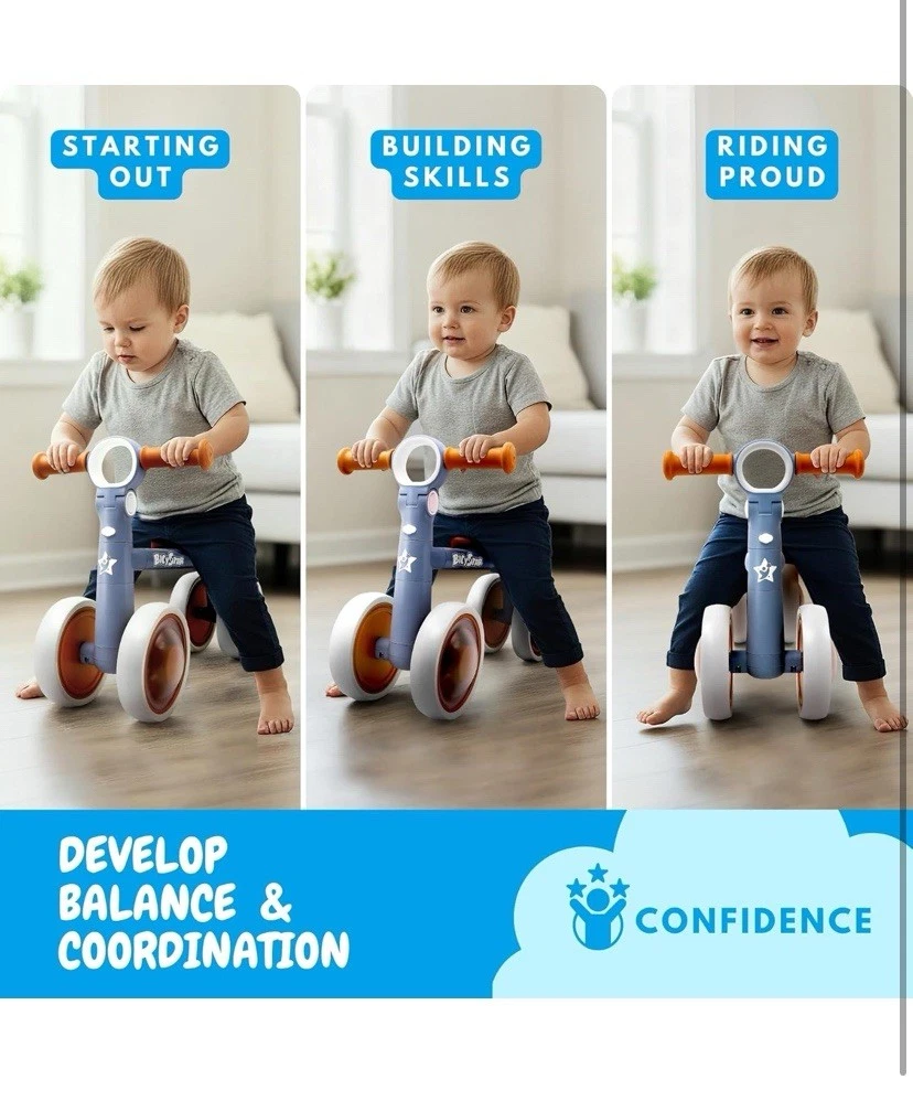 Baby Balance Bike with Adjustable Handlebars, Rear Wheel, Colorful Lighting, Best Gift for 1-2 Years