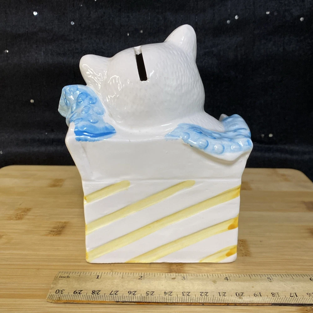 Preowned vintage kitty piggy bank with minor chipping in a couple places. The rest is in great condition. Sold as is. Feel free to make an offer! bank-005