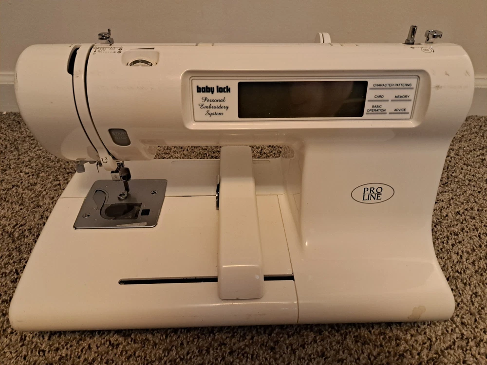 Does not include hoops or power cord I have not tested this on fabric but everything appears to be moving correctly when turned on. Fairly easy to follow directions on the display. The cord is not included, it goes to my other machine. sold as is
