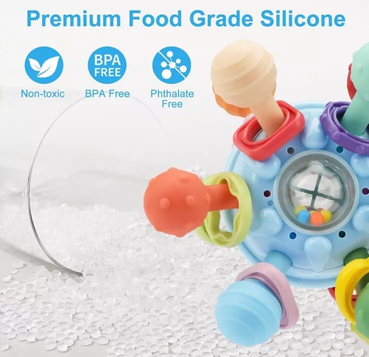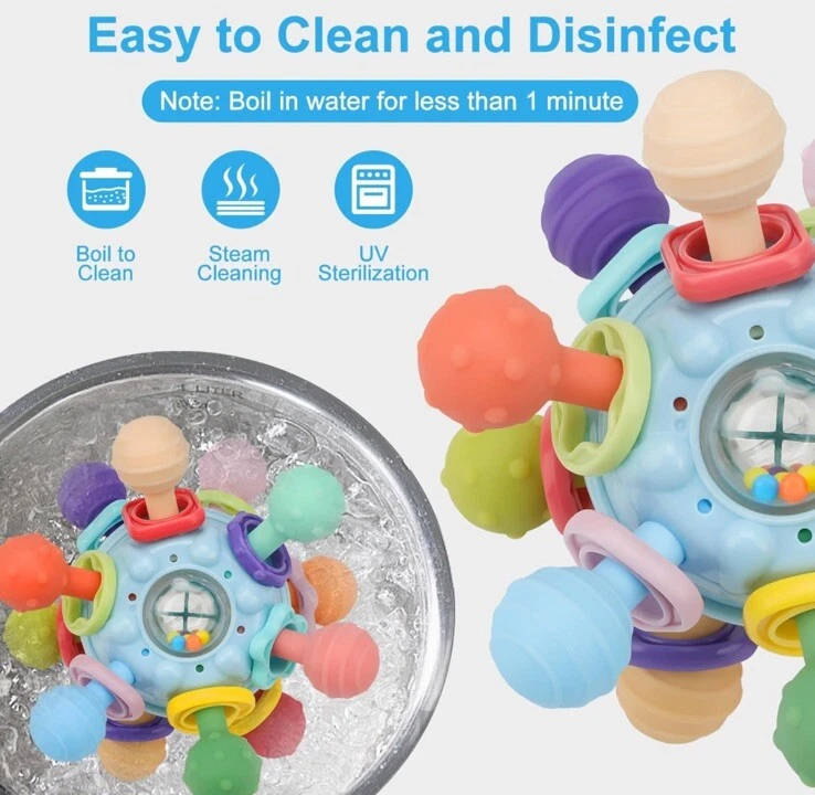 Crafted with your baby's development in mind, this Montessori sensory toy offers a blend of functionality and safety. It's a food-grade teething toy that babies can enjoy biting and exploring, helping them to develop their sensory skills and strengthen their little jaws. The silicone material is smooth, soft, and BPA-free, ensuring your baby's comfort and your peace of mind. This delightful blue teether is easy to clean and is designed for durability, with machine washable convenience. It's suitable for babies aged 0-12 months, fitting seamlessly into their early developmental stages. The toy's design reflects Montessori education principles, encouraging your little one's natural curiosity and learning through play.