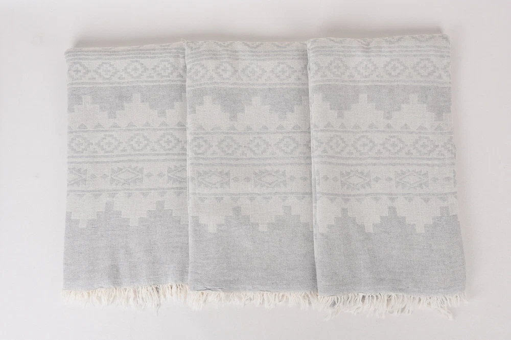 Item Length: 36" Theme: Beach Color: Light Gray Softness: Soft Department: Adults Item Thickness: Medium Material: 100% Cotton Item Width: 71" Pattern: Geometric Room: Any Room Size: 36"X71" Brand: Turkish Type: Beach Towel