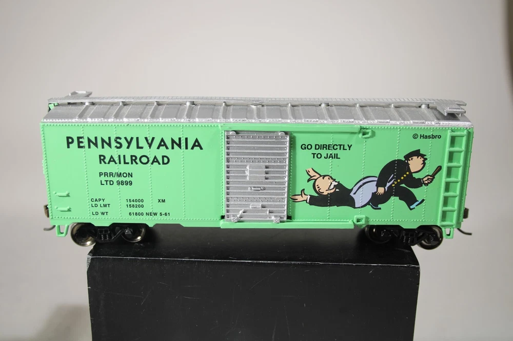Bachmann HO Scale Monopoly Collector's Edition Train Green Boxcar 9899 Pennsylvania Railroad PRR Combined Shipping : Thanks for bidding!! I will be happy to combine multiple store items and auctions of all types to save on shipping costs - just make your purchases and ask for a combined invoice! Shipping & Tracking: I normally ship within one day of receiving payment and insurance is now included on all domestic packages. Tracking numbers are supplied for all domestic and international Priority packages. Please allow up to 3 weeks for international Priority depending on country. International First Class provides no tracking number and can take up to 6 weeks for delivery depending on country. Returns: I try and describe items conservatively but will make a mistake from time-to-time. If you are unsatisfied for any reason please e-mail. Returns are trouble-free and I pay the postage. Powered by eBay Turbo Lister The free listing tool. List your items fast and easy and manage your active items.
