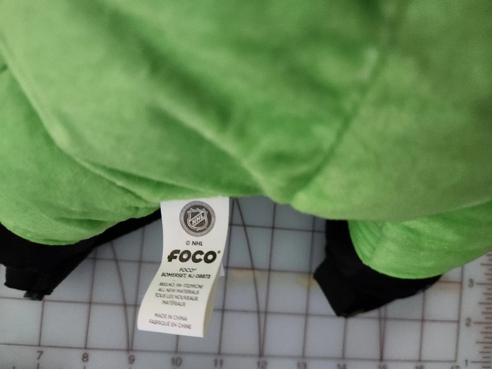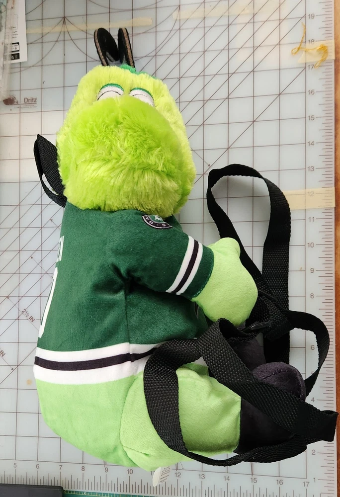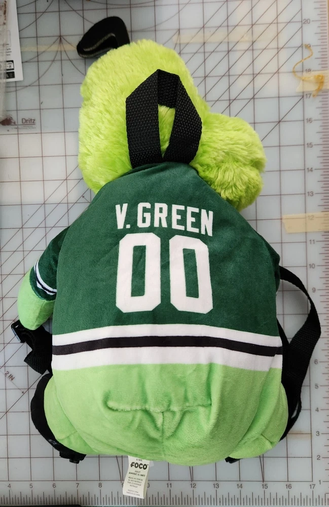 This is a 17" green backpack featuring the Dallas Stars' mascot, Victor E. Green, as a plush toy. The backpack is an officially licensed product of the National Hockey League (NHL) and is made by FOCO. It is designed for regular season use and is perfect for hockey fans who want to show their support for the team.
