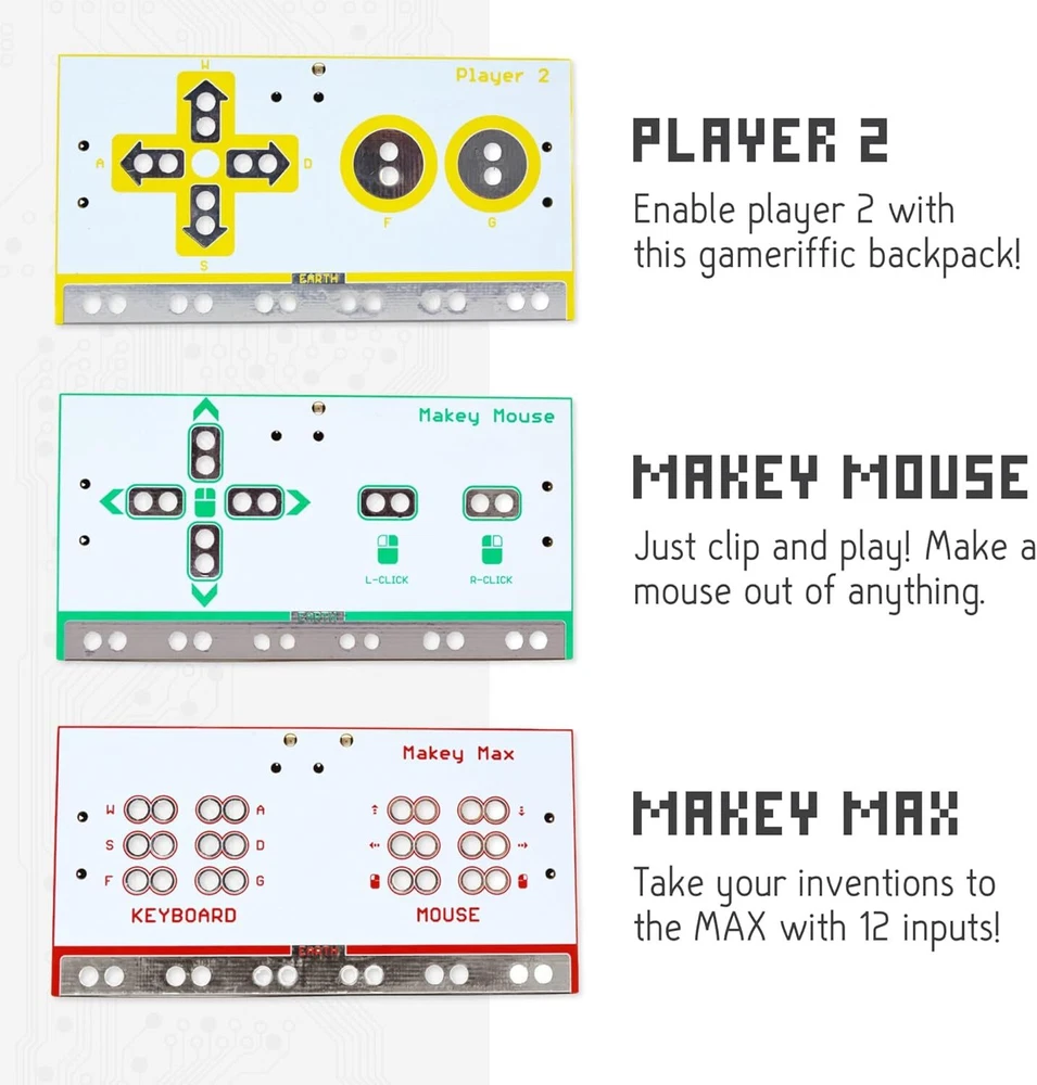 Play with Friends: Enhance your gaming experience by seamlessly integrating a second player with the Player 2 Backpack. Double your game controls, double the fun! This innovative backpack facilitates easy connection for player 2, allowing you to create personalized game controllers and enjoy gaming with friends! Maximize Capabilities: Unlock the full potential of your projects with the Max Backpack - a revolutionary tool that allows inventors to easily connect to the 12 inputs on the back, providing seamless access to the entire board. Experience the pinnacle of extreme STEM inventing! Limitless Options: Explore the world beyond the screen as transforms engineering kits for kids and coding concepts into captivating real-life experiences. Introducing the Mouse Backpack, which breaks out mouse controls into “gator bites,” allowing easy clipping to fun items for one-of-a-kind drag-and-drop adventures. STEM Excitement: Turn STEM learning into an engaging adventure! Whether your child aspires to be an engineer or a computer wizard, the Backpack Bundle is designed to unleash their creativity in unique and enjoyable ways! These backpack extensions, make the perfect STEM kit for ages 8 and up! Product information Product Dimensions 7 x 6.25 x 2.13 inches Item Weight 8.8 ounces On Feb 16, 2025 at 18:35:00 PST, seller added the following information: