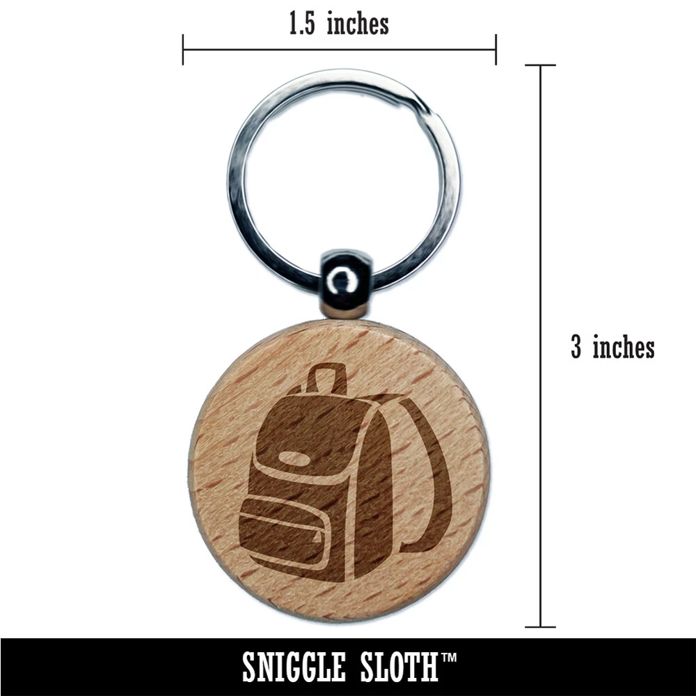 Backpack Icon School and Travel Engraved Wood Round Keychain Tag Charm