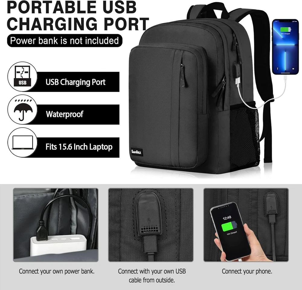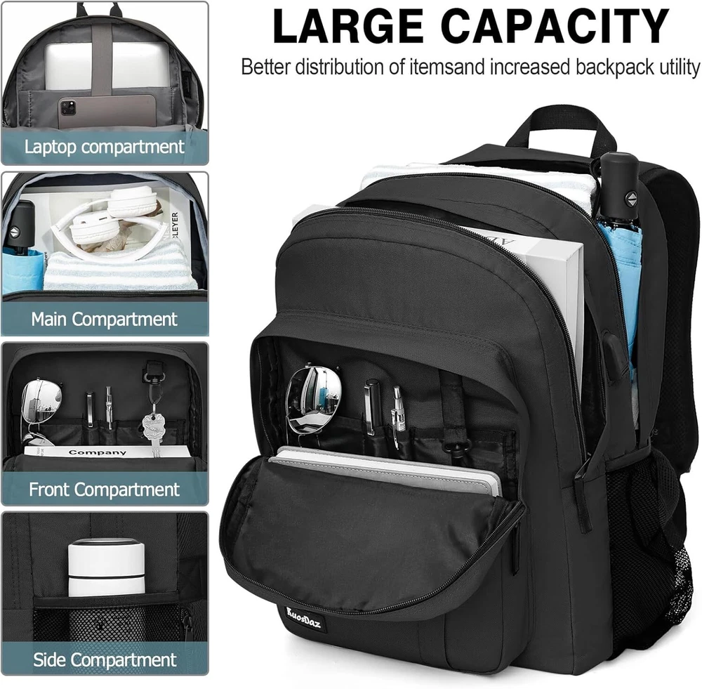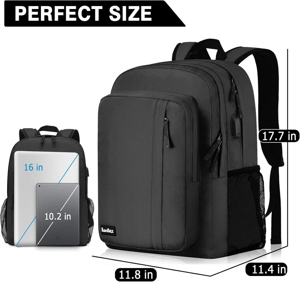 Backpack for Men Women, School Backpacks Teens Boys 15.6 Inch, Dark Grey Product Details Large Capacity Lightweigh Backpack: Size: 17.7*11.8*11.4 inch, 30L. This dark grey laptop backpack for men women has a simple appearance and lightweight material. There is an independent laptop protection compartment, which can fit a 16 Inch laptop. The front of the computer backpack also includes 4 pockets of different sizes, which can store passports, power banks, pencil cases, clothes and other items needed for daily school, office and travel. Portable USB Charging Port: There is a USB charging port extension on the side of the work backpack, with a built-in charging cable inside, which is convenient to charge your phone (POWER BANK is not included). Kuosdaz work bag is a very beautiful and very functional bag. Ergonomic & Water Resistant Fabric: Comfortable airflow back design, made of highly elastic breathable sponge and honeycomb shock-absorbing fabric, sturdy and soft, heat dissipation fast. Adjustable shoulder straps reduce weight and protect your back and shoulders. High-density polyester waterproof oxford cloth keeps your belongings from getting wet. Boys Travel Backpack: The mesh shoulder strap design on both sides of the back pack allows enough air circulation around your shoulders. A fashion daypack designed for all-day comfort. The hidden anti-theft pocket on the back can protect your smartphone, wallet, passport and other valuables from being lost, for all basic daily needs for university, school, work, travel, hiking, business trips. Lightweigh Back Pack for All Occasions: This is a sturdy computer backpack, ideal gift for grandson, son, teen boys, friends, lover, teachers, mens. A great choice for office work backpack, travel backpack for men, bookbag for men, school backpack for boys, college backpack, daily use basic backpack, nurse backpack, students backpack, teachers backpack, all indoor and outdoor activities. Age: over 3 years old