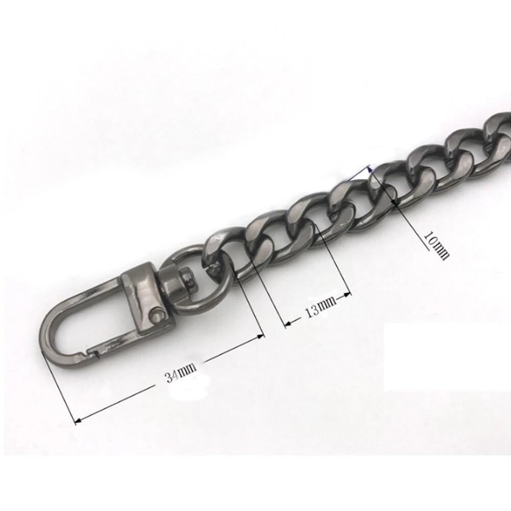 100/110/120cm Aluminum Metal Chain DIY Replacement Shoulder Bag Strap Chain Feature: 1. 100% brand new and high quality. 2. Ultralight. Specification: Item Type:Bag Aluminum Chain Material:Metal Color:Gold,Light Gold,Silver,Gun Black,Dark Gold Size:100cm,110cm,120cm/39.37,43.3,47.24inch Package:1PC Chain Note: Please allow1-2cm measuring deviation due to manual measurement. Due to the difference between different monitors, the picture may not reflect the actual color of the item. Thank you!