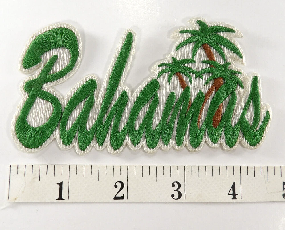 Home"Bahamas" Embroidered Iron-On Sew-On Patch 4 1/2"x 2 1/4" Green