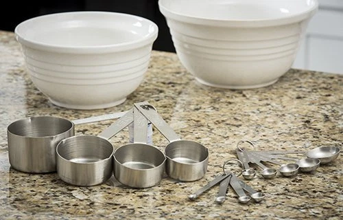 Products H726 Bakers Dozen Measuring Set Includes Measuring Spoons, Measuring Cups And Spice Spoons. 4 spice spoon, 4 measuring cups, and 5 measuring spoons. Measuring set 4-Piece measuring cup set 5-Piece measuring spoon set 4-Piece spice measuring set