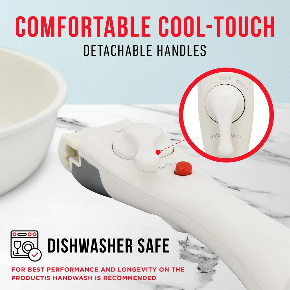 Introducing the Bakken-Swiss Detachable 15-Piece Cookware Set, a display of quality and convenience. This collection isn't just about aesthetics; it's made to last. From the sturdy tempered glass lids to the ergonomic cool-touch handles, each component is proof of durability and safety. Suitable for any cook of any level, this set makes the transition from the stovetop to the oven quick and easy. The Bakken-Swiss set allows precise heat distribution across every pot and pan. This means that every meal will be cooked evenly. The see-through, tempered glass lids enable you to keep a close eye on your cooking without releasing essential steam, retaining flavors and vital nutrients. When it's time to clean up, the standout nonstick granite coating makes it the easiest task, minimizing post-cooking chores. At Bakken-Swiss, we believe in offering you a cooking experience that is enjoyable, simple, and safe. Ready to challenge your culinary skills? Try your Bakken-Swiss set–add it to your cart today! MULTIPLE SIZES: The set includes 7-inch and 8-inch Sauce Pots and their fitting lid. Explore diverse culinary techniques with the 10-inch Jumbo Cooker and refine your skills on the 8-inch and 10-inch Fry Pans. The 2 detachable handles and protective felt pads ensure seamless transitions and easy storage. You have the perfect tools to cook any dish for any occasion. VERSATILE AND ADAPTABLE: Engineered for every home, this set is suitable for all stoves–gas flame, induction plate, or classic coil. It adjusts and allows maximum heat efficiency and even cooking. This set can be used on the stove, but it is also oven-safe. SAFE FOR YOUR : Enjoy nonstick performance that is clear of PFOS/PFOA. With a maximum temperature resistance of 400° Fahrenheit (200° Celsius), our pans ensure that every meal is cooked to perfection without any harmful chemicals. EASY AND CONVENIENT: Cooking is made easier with the cool-touch detachable handles. Carefully engineered, they a burn-free grip. There is more! The crystal-clear tempered glass lids allow you to keep an eye on the food at all times. We also cared about making the pots easy to wash, to avoid any cleaning nightmare. QUALITY AND DURABILITY: We prioritized quality with a reinforced die-cast aluminum metal hardness rating of 1-2 HB. Paired with silicone and tempered glass, this set is durable and stands out from the crowd. With a coating thickness of 25-30 um and a multi-layered build of 4.0mm, it promises a long-lasting life span.